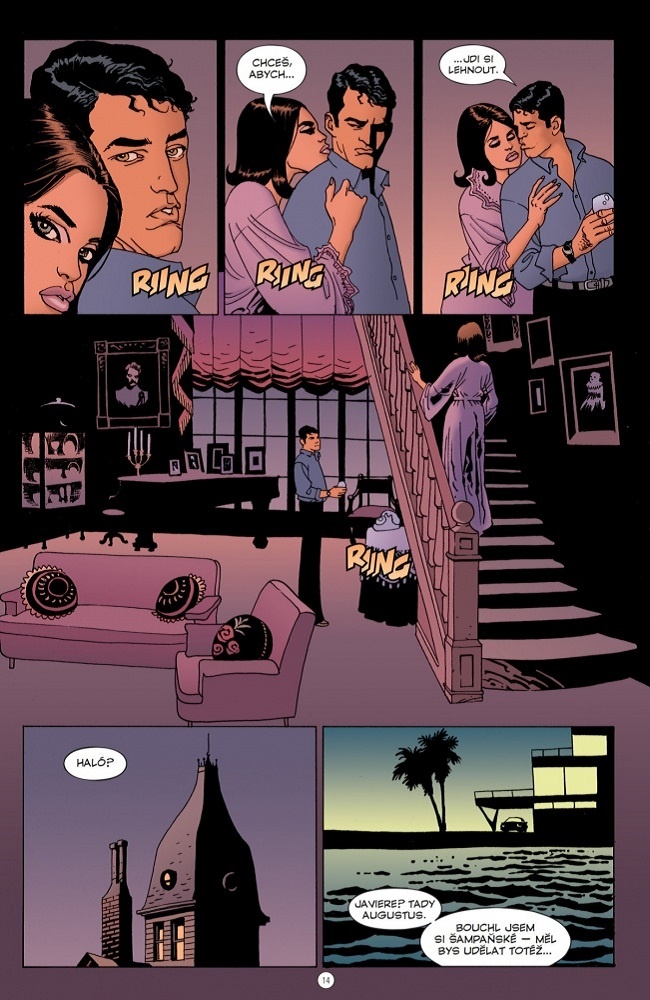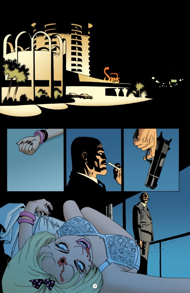 Série „100 nábojů“ ale není jen skvělý scenárista, jímž Brian Azzarello rozhodně je, ale je to i vynikající kreslíř Eduardo Risso. Eduardo je druhou polovinou týmu, protože to je jeho kresba, jeho černá, která dělá „100 nábojů“ tak skvělých. Na začátku knihy „100 nábojů 13: Smůla“ jsem si říkal, jestli už to trochu neflákal, jestli není kompozice na jeho poměry trochu jednoduchá, že už tam není tolik toho prolínání scén, ale nakonec mi ukázal, že prostě takovou nebude mít každou kapitolu, ale že tohle pořád umí a že mu to skvěle funguje. Jeho tempo je zběsilé, struktura některých stránek je úchvatná a je skvělý jak v případě, kdy kreslí několik panelů na stránku, že se jejich číslo blíží třeba deseti, ale i ve chvíli, kdy zde má pouze jednostránkovou kresbu. Jeho styl všechno parádně oživí. Díky němu je série skvělá od začátku až do konce.