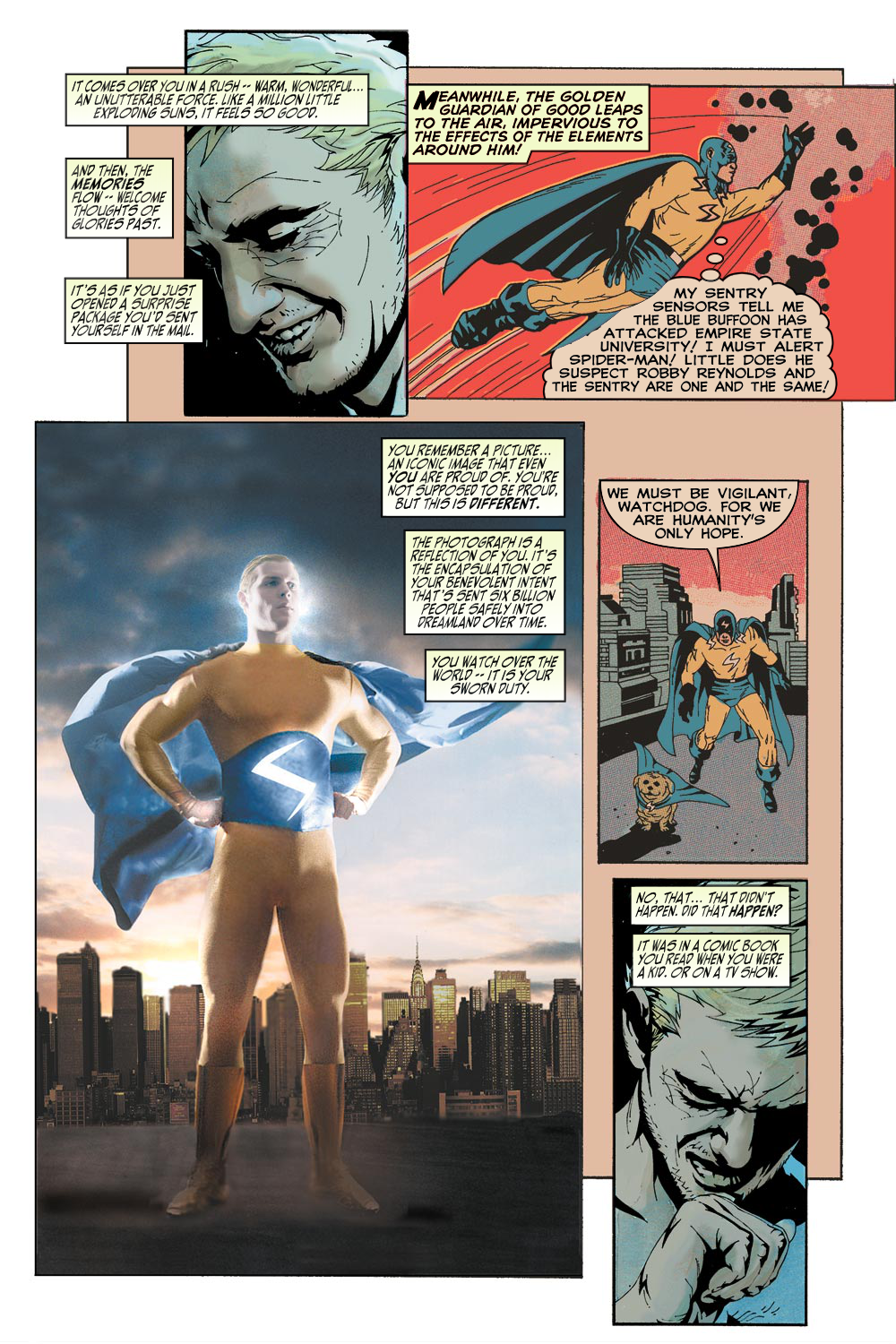 Sentry jako postava má svoje kouzlo, jemuž místy pomáhá i zpracování, protože zde jsou parádní retro střihy. Právě v tomhle je postava zajímavá - má retro nádech, což je dáno i jeho kostýmem, který je skutečně oldschoolový. Příběh je pak vystavěn tak, že si máte celou dobu říkat, co se vlastně stalo. Jednoduše - Setry byl první superhrdina, Reed Richards byl jeho nejlepším přítelem, Peter Parker mu udělal památnou fotografii, která obletěla svět, lidé byli Sentrym zachráněni více než kýmkoli jiným. Jenže pak se na něj zapomnělo. Nikdo si Sentryho nepamatuje. Proč? A proč si jeden člověk právě vzpomněl? A proč si ten člověk - jmenuje se Robert Reynolds - myslí, že je Sentrym? Paul Jenkins se moc snaží o to, aby bylo vyprávění napínavé od začátku do konce, ale nemůžu si pomoct, i když tam tolik dobrých a promyšlených náznaků není, celou dobu to může vést jen k jedinému zjištění, které skutečně v tom posledním sešitu „Sentry: Void“ skutečně padne. Jiná možnost ani nebyla.