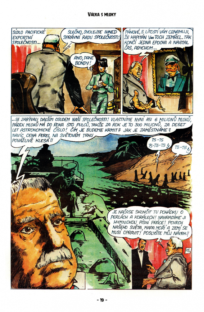 Vydání komiksu „Válka s mloky“ z roku 2018 je příjemné tvrdou vazbou, ale na druhou stranu v tomhle ohledu nepřináší nic vyloženě zásadního. Je skoro škoda, že nedošlo k vydání ve větším formátu, i když nutno říct, že ani tenhle relativně malý komiksu nijak zásadně nevadí. Větší stránky by ale neuškodily. Komiks je stále velmi dobrou adaptací zásadního literárního díla, které bychom měli znát. Je jedno, že Karel Čapek psal jako příběh, jež odrážel nástup fašismu a jeho potenciální zhoubnost v případě jeho tolerance, což se samozřejmě potvrdilo. Tohle je dílo, které je aktuální i dnes, kdy stále nejsme schopni pochopit, že tu hrozby jsou a my je tolerujeme. Není to hrozba uprchlíků, na kterou se upíráme jako na mantru, ale jsou to hrozby fanatismu, ať už náboženského, tak i politického. Ani za osmdesát let jsme se v tomto ohledu výrazně neposunuli. Jen ty hrozby se trochu proměnily.