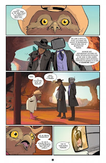 Hned na začátku knihy „Sága 8“ jsme svědky scény, která nám trochu nedává smysl. Alana je s Princem Robotem na planetě, která jako kdyby vypadla z nějakého westernového filmu, samozřejmě za předpokladu, že by v tom westernovém filmu byl šerif, který má hodně ze sovy. Janě, je to planeta westernu, ale takového sci-fi/fantasy westernu, stejně jako je taková celá „Sága“. A tohohle sovího šerifa se Alana a Princ Robot ptají na to, kde by si mohli nechat provést potrat. Tedy to v Alanině případě. Jenže vzhledem k tomu, že už je v pokročilém stádiu těhotenství, šerif jí nemůže pomoct. Ale jen tak mimo řeč zmíní, že existuje místo, které si říká Badlands a kde by si mohli zajistit to, co potřebují.