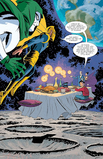 Součástí knihy „DC komiksový komplet 49: DC Nová hranice, kniha druhá“ je také klasicky retro sešit, jímž je tentokrát „Showcase 17“, kde se poprvé objevuje postava, která si říká Adam Strange. Tenhle sešit je takový příjemně oldschoolový a musím říct, že by mě možná i bavilo číst další příběhy. Důvod, proč se zde objevuje právě Adam Strange, je v tom, ž to je právě jeho postava, která v hlavním příběhu knihy „DC komiksový komplet 49: DC Nová hranice, kniha druhá“ vstupuje na scénu a je takovou tou klasickou záchranou brzdou, kdy už si myslíte, že nikdo s žádným řešením nepřijde, ale pak se ukáže, že e zde ještě jeden člověk, který by mohl všechno zvrátit. Přesně k tomu sloužil Adam Strange. Darwyn Cooke rozepsal dobrý příběh, ale zakončil ho prostě tak, jak bylo třeba. Zajímavá témata se s dění postupně vytrácí, jako kdyby byla jen půdou pro to, aby byli superhrdinové představeni. A na konci nás čeká závěr, který je trochu nudný. Kresebně ale Darwynovi moc vytknout nelze, sám si svůj příběh nakreslil skvěle. Jeho linka mí příjemný retro nádech, jenž s dějem souzní.