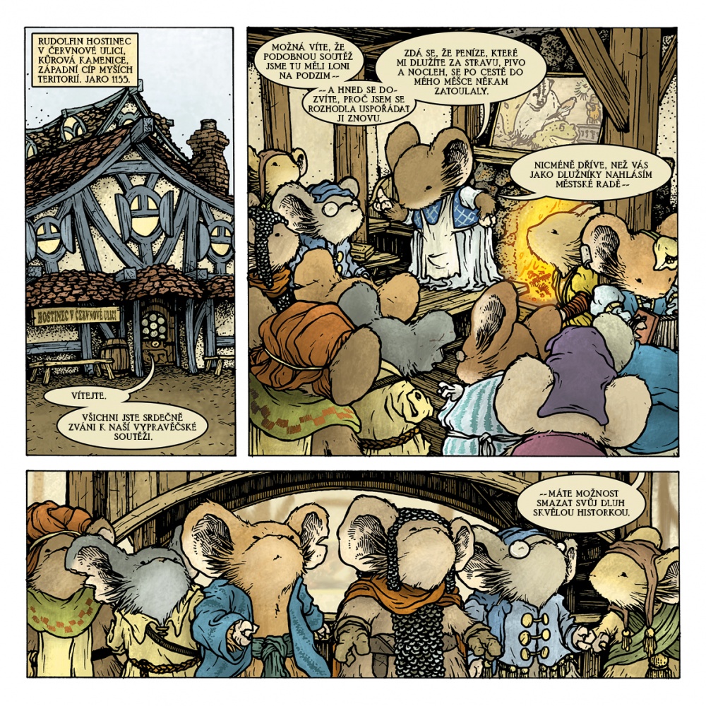 David Petersen se samozřejmě ujal redakce sbírky, i když nikoli sám, a snažil se pro ni vybrat zajímavá jména, s nimiž by rád spolupracoval. A skutečně se to povedlo, protože ve sbírce „Legendy o Myší hlídce 2„se objevují jména jako Stan Sakai nebo Bill Willingham. Ale nutno přiznat, že většina autorů, kteří se zde objevují, jsou pro českého čtenáře v češtině novinkou. Je fajn se setkat se zajímavými autory, protože přinášejí jiný styl do světa, který znáte a který je svou kresbou celkem specifický. Ale vlastně to vůbec nevadí, protože i když je kresba odlišná, nemáte u příběhů pocit, že by nepatřily do Petersenova světa. Tohle je rozhodně fajn, navíc můžete obdivovat různé kresebné styly a to, jak je jimi možné zachytit myšky.