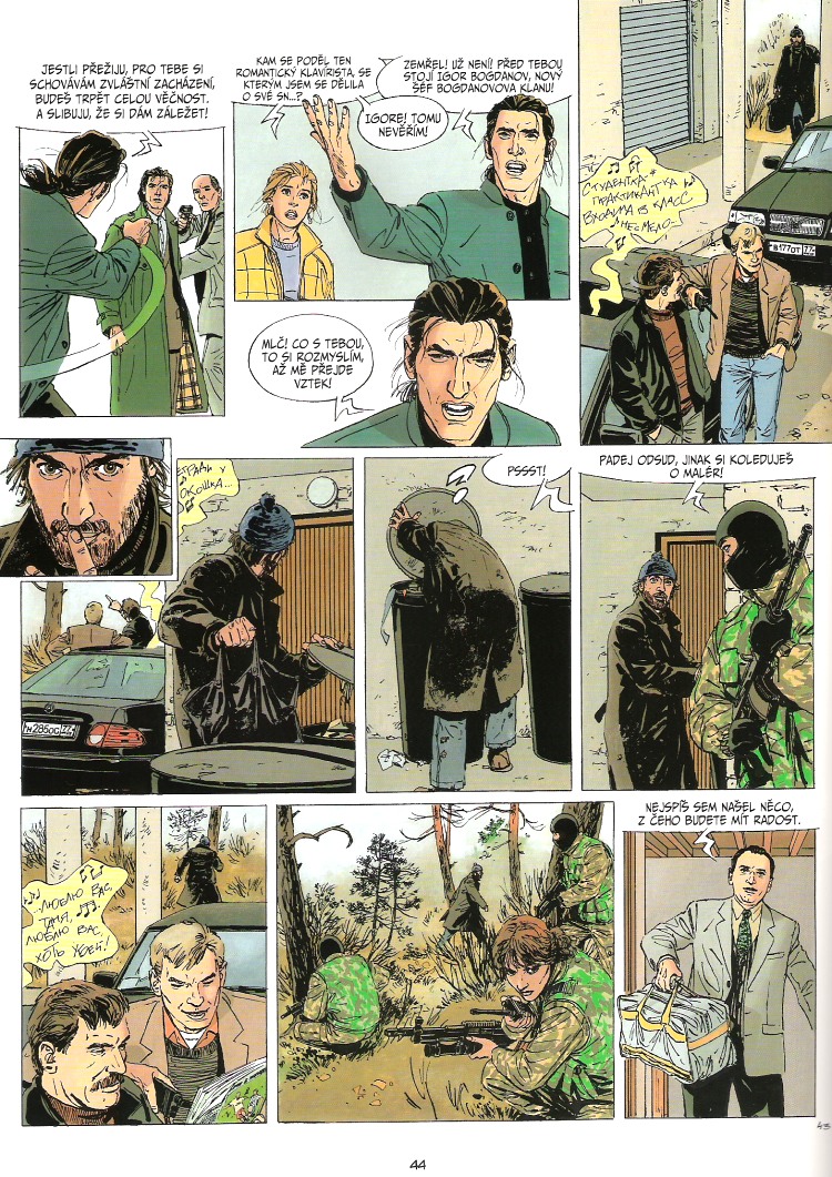 Jestli jsem u komiksu „Alpha 2: Bogdanovův klan“ psal, že to není moc akční, i když už se tam té akce objevilo více než v dílu „Alpha 1: Výměna“, tak sešit „Alpha 3: Výplata vlků“ je pak ještě jasnější odpovědí na moje stížnosti, protože hned od začátku je zde akce až dost, skoro až beze slov, takže vám možná ani nebude jasné, co se to tu děje. Ale to všechno se děje vlastně proto, abychom mohli dojít určité konkluze. První tři knihy totiž tvoří určitou trilogii, kterou by klidně bylo možné označit za uzavřenou, i když je zde otevřený prostor pro pokračování. Což se také nakonec naplnilo, protože česky vyšel ještě jeden díl, ale stále je to málo, protože v originále už je sešitů celkem třináct, nemluvě o tom, že ještě existuje spin-off „Alpha premières armes „.