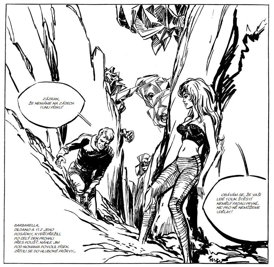O Barbarelle nevíte, co si myslet. Popravdě jsem tak nějak čekal, že to je silná, feministická hrdinka, ale ona se místy chová jako blbka, místy jako sexuální otrokyně, místy jako ztracená žena, prostě tak nějak různě, jak se to Forestovi hodilo, vždy ale tak, aby s někým skončila v posteli. Tam ale Forest končí a nenechá před divákem odehrát žádnou sexuální scénu. Nebojí se Barbarellu aranžovat do různých sexy i odvalených pozic, ale jakmile by mělo dojít na milostný akt, chybí nám panely a dostáváme se do bodu, kdy se svým milencem už jen leží v posteli, většinou zahalená. Přiznám se, sice je to konec 60. let, ale pořád jsem očekával, že komiks bude odvážnější. Ale je pravdou, že kresba je to, co zde funguje. Barbarella je prostě nádherná a je vidět, že Brigitte Bardot nebyla inspirací, Barbarella je Brigitte Bardot. Francouzská herečka neskutečně ovlivnila sexuální revoluci a nebýt jí, není ani „Barbarella“. Forest byl jako uhranutý a nedivím se mu, naprosto ho chápu. Sám jsem okouzlen BB a jsem okouzlen i Barbarellou, ale jen její vizuální stránkou.