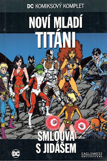 Kniha „DC komiksový komplet 55: Nová Mladí Titáni - Smlouva s Jidášem“ nám představuje tým, který je zajímavý především proto, že se sice skládá z původně dětí, jež pomáhali superhrdinům, ale tohle už jsou jiné postavy. Kid Flash už není tak dětský, naopak si hledá své vlastní místo ve světě. Podobně je na tom i Dick Grayson, jenž je tak trochu hlavní postavou, protože právě jeho proměna je zásadním prvkem celého příběhu. a jo, docela se mi líbilo, jak k té proměně došel. Sice nechápu, proč to muselo být zrovna tohle jméno, ale budiž. Nightwing má zrod, jenž lze považovat za takový, který je dán motivacemi a vývojem postav. A to se mi líbí. Z dětského Robina se stává konečně chlap, který už není závislý na Batmanovi. Je to hrdina, co má kolem sebe vlastní tým a snaží se je vést a pomáhat jim. A jako vůdce musí přijímat rány, jež jim osud dá. Jak je to pak v kontrastu s retro příběhem, jenž je na konci knihy, kde skutečně jde jen o to, že se pomocníci superhrdinů setkají v nablblém a dětském příběhu. Docenit potenciál těchto postav dokázali tvůrci až právě v 80. letech.