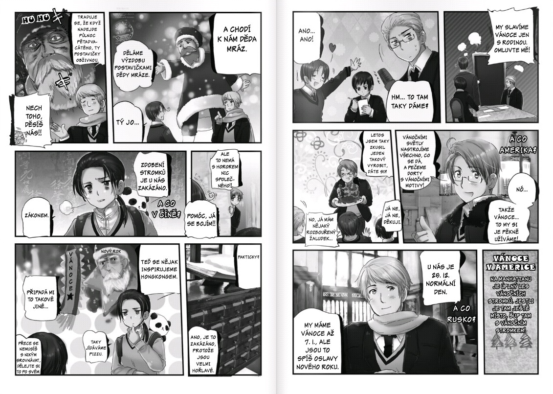Na knize „Hetalie: Mocnosti Osy 2“ je jednoduše strašně moc vidět, jak je roztříštěná a jak jednotlivé sekvence nemají žádnou spojitost. Pár stránek se věnuje jednomu tématu nebo třeba jedné historické události, a pak se najednou skočí naprosto jinam, k jiným postavám. Jasně, na tom trochu nezáleží, pokud se tak nějak určí, kde se dění odehrává a proč tam jsou aktéři, kteří tam jsou, i když i v tomhle směru i myslím, že budete trochu tápat. Když se přes tohle přenesete, pořád by zde ještě měl být obsah, který bude vtipný, zábavný, poučný. A ony to v sobě yonkomy v knize „Hetalie: Mocnosti Osy 2“ mají, jen je to ve skutečně malých dávkách.