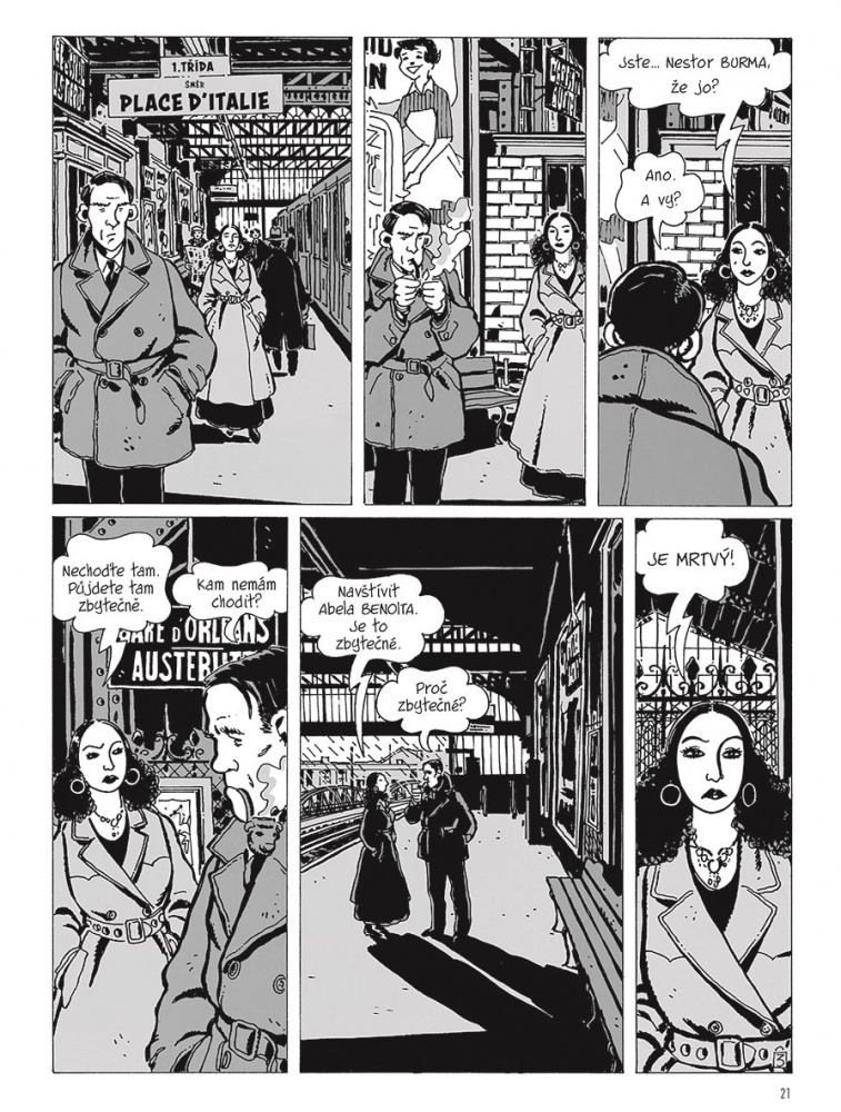 My se s Nestorem Burmou sice setkáváme poprvé, ale v originále - tedy francouzském - je možné se s komiksovými adaptacemi setkat ve výrazně vyšším počtu. V roce 2019 je vydáno celkem třináct dílů, kdy Jacques Tardi vytvořil prvních pět, na dalších se pak různě střídali Emmanuel Moynot a Nicolas Barral. My dostáváme první díl, který má na svědomí Jacques Tardi a myslím si, že to byl docela zajímavý začátek pro celou sérii. Neznal jsem Nestora Burmu, ale už nějak od pohledu na obálku jsem měl pocit, že je to takový noirový hrdina. A takový přesně je. Dokonce tu má i nějakou tu femme fatale, je to detektiv, který je ostřílený životem, ale někdy také dostane na hubu, není to ten, který by jenom vyhrával. Prostě noirová postava, jak má být. Něco navíc jí pak dává skutečnost, že se děj odehrává v Paříži a nikoli v New Yorku nebo jiné velkém americkém městě, s nimiž máme noir primárně spojený.