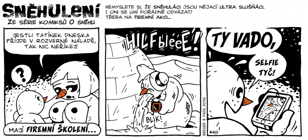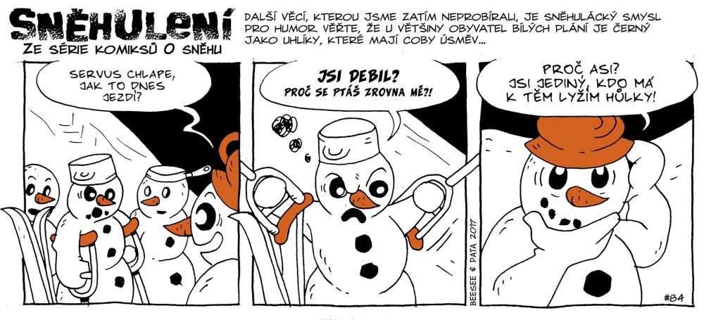 Výtvarná stránka je fajn, líbí se mi, jak je někdy volena i barva - především tedy pro mrkve - což vypadá prostě hezky i v to tištěném provedení. Možná by kniha mohla mít ještě lehce větší formát, aby se moly i stripy trochu zvětšit, ale se čtením není problém, čtou se dobře. Někdy je toho textu až příliš, ale to už záleží na čtenáři, jestli mu ty úvodníky ke každému stripu sednou, či nikoli. Jsem si jistý, že se najdou tací, kterým budou vadit, naopak jiní si je budou užívat. Právě z nich budete mít nejvíc pocit, že se mělo vlastně jednat o formu reportážního stripu. Ani úvodníky a ani texty v bublinách nejsou ale zárukou toho, že se budete smát. „Sněhulení“ není nutně o tom, že se máte bavit. Někdy to je jízlivý komentář, někdy autorům i lehce došel dech. Osobně nemusím politická témata, ale jiným se tohle může líbit.