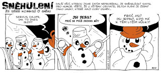 Kniha „Sněhulení“ přináší ještě něco navíc než jen 100 strip, které už můžete, protože zde najdete ještě stripy navíc, které se odehrávají po sto na webu zveřejněných. To jsou stripy, které vlastně tvoří takový bonusový příběh, jemuž by asi více slušelo koncipování do standardní formy komiksu, ne nutně do proužků, protože je vidět, že samotné proužky nefungují. Prostě je nutné je brát jako stránku příběhu. Tenhle příběh naznačuje, že z říše sněhuláků tohle možná není všechno. Jsem docela zvědavý, jestli se autoři k tématu ještě vrátí. Pokud ano, za sebe trochu doufám, že to bud jinou formou, než stripy v podobě „Sněhulení“, protože ty mi zatím z říše sněhu přišly nejslabší, i když i mezi nimi najdete kousky, které jsou zajímavé, chytré a správně řízné.