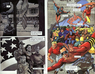 Skončila druhá světová válka. Samozřejmě tedy trochu jinak než ve skutečnosti. Superhrdinové Zlatého věku se jí neúčastnili a my se dovídáme docela zajímavý důvod, proč tomu tak bylo. Už tady mám pocit, že James robinson skutečně hodně přemýšlel o Zlatém věku a o tom, jak všechno zasadit tak, aby to bylo funkční. A ono to funkční je, hodně funkční. Nejen, že sledujeme, jak se hrdinové vyrovnávají s tím, jaký je svět, a hlavně Amerika po druhé světové válce, ale sledujeme i to, jaké to vlastně bylo za druhé světové války, co se tentokrát stalo a jaké tohle má následky na roky poté. Klasičtí hrdinové Zlatého věku se sice do války nezapojili, ale byl tu jeden, ne příliš významný superhrdina, který se za války skutečně vyznamenal a on je tím oslavovaným hrdinou, na nějž se nyní Amerika upnula. Natolik, že je ochotna mu naslouchat, jemu a jeho řečem o tom, jak je rudá zlá, jak se Rusko snaží ovládnout svět a jedinou cestou, jak se ho zbavit, je ovládnout svět svou vlastní silou. Aneb jak se říká, vyrazit klín klínem.