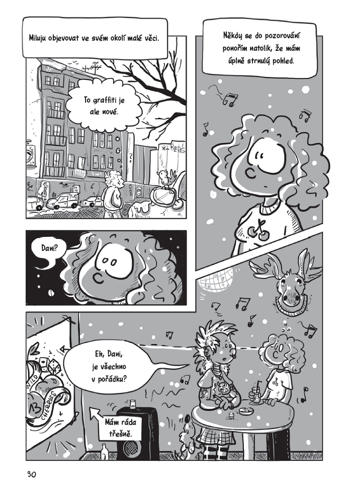 - Hledání si přátel a vlastní přijetí toho, že je autorka jiná. A že se za to nemusí stydět. Ono se ale skoro větším problémem ukazuje to, že okolí většinou není schopné přijmout, že by druhý člověk mohl být odlišný.