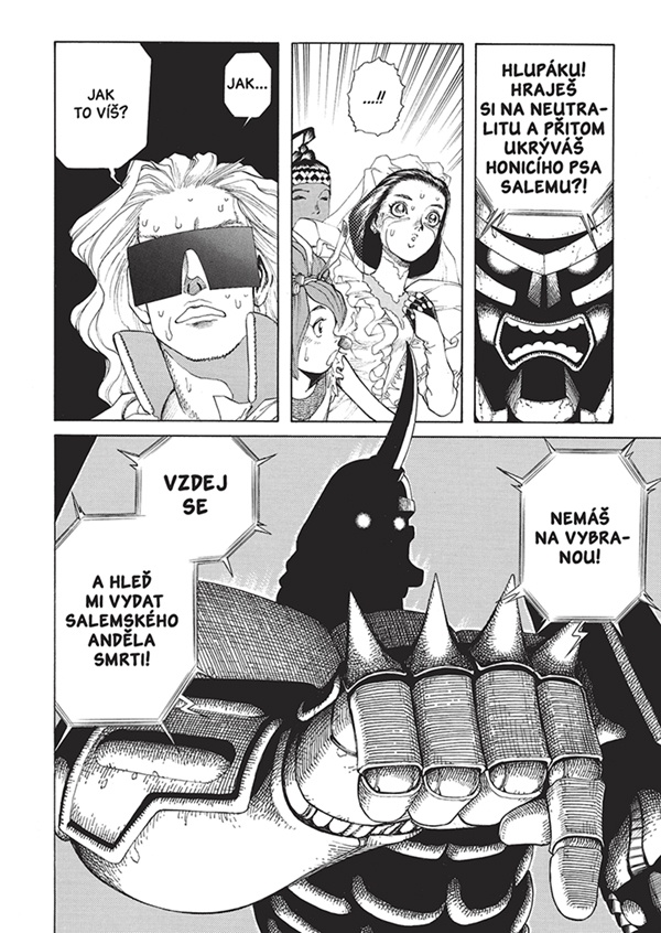 Zajímavostí knihy „Bojový anděl Alita 4: Dobytí Salemu“ jsou dva konce. Je zde jeden, který nyní autor považuje za oficiální, jak napsal, což je konec první, kterým příběh končí. A pak je zde ještě dalších sto stránek, což je vlastně bonus v podobě druhého konce, původního, který nakonec autor změnil. Popravdě, nevím, co si o tom mám myslet. Nemyslím si to, e to je dobrý krok, už jen proto, že si nemyslím, že by byť jeden konec byl nějak zajímavější, nějak převyšoval ten druhý. A to ani nemluvím o tom, že se mi nelíbí ani jeden konec, který autor zvolil. „Bojový anděl Alita 4: Dobytí Salemu“ končí trochu jinak, než byl veden. Před sebou jste měli celkem akční komiks, který se najednou chtěl proměnit v něco poetického, v něco trochu hlubšího. On to nebyl náhlý přerod, protože k němu docházelo postupně v jednotlivých knihách, ale jako kdyby to sérii tolik neslušelo, jako kdyby to bylo něco navíc a skoro až zbytečné.
