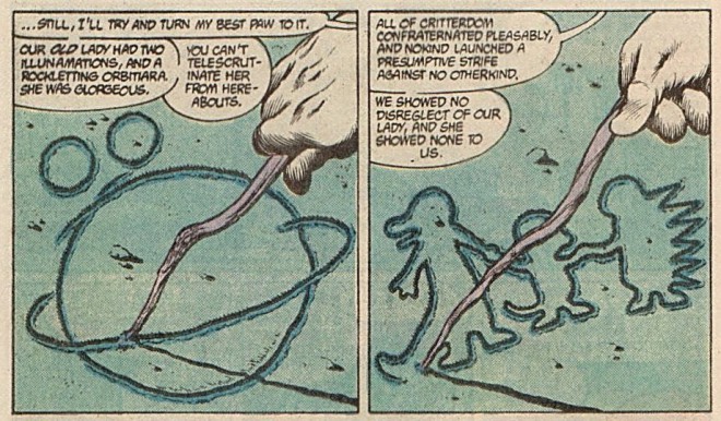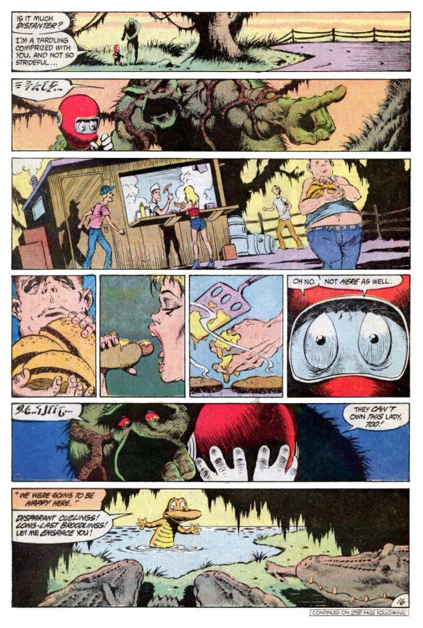 Na příběhu s Pogem je zajímavé to, jak se zde horor kombinuje s dětským příběhem ve formě, která je prostě jedinečná a která vás dovede zasáhnout. Jasně, je v tom do jisté míry silné poselství, které by snad i mohlo být označeno jako ekologické, ale přece jen je tenhle komiks trochu hlubší. A to pořád mluvím jen o jednom původním sešitu, který se ve sbírce „DC komiksový komplet 62: Bažináč, kniha druhá“, přitom jich je zde celkem osm, a to nepočítám ještě retro sešit, který je také součástí tohoto vydání. Tentokrát se jedná o sešit „Swamp Thing 1“, který obsahuje návrat k tomu, jak to vlastně bylo s Alecem Hollandem, což je sice v rámci série celkem známý příběh, Alan Moore na něj odkazuje už v předchozí knize, ale je fajn vidět to, jak to bylo napsáno a nakresleno původními tvůrci, tedy Lenem Weinem a Bernie Wrightson. A popravdě, i tenkrát to mělo svoje kouzlo, takové správné hororové retro.
