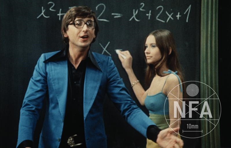 Vůbec první filmový scénář, na kterém se Svěrák podílel (konkrétně je autorem dialogů), dal základ muzikálové komedii Pavla Hobla, která byla mimo jiné součástí Top 20 filmů ze školní lavice. Tento veselý a barevný film to za tuhé normalizace neměl jednoduché. Jedná se totiž o metaforu symbolizující průběh předchozích let komunistické totality, kdy matematikář Ludolf (Jiří Menzel) je na čistě dívčí třídu nejprve drsný jako temné padesátky, následně si je díky lsti, kterou na něj dívky v čele s půvabnou Helenou Trojanovou (Jaroslava Schallerová) vymyslí, získá šedesátkově rozevlátou zpívanou výukou a nakonec dojde na normalizační vystřízlivění. To společně s obsazením Menzela a celkovým feelingem evokujícím předchozí uvolněnou dekádu působilo na cenzuru jako červený hadr na býka, takže film skončil na čtyři roky v trezoru. Svěrák si zde střihnul miniroličku učitele ve sborovně, který však neřekne ani slovo.