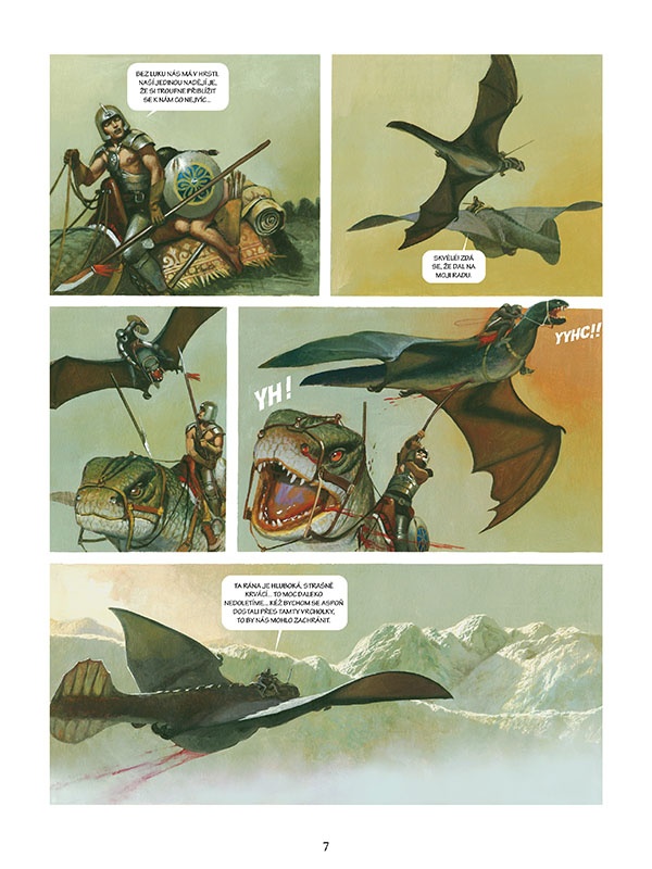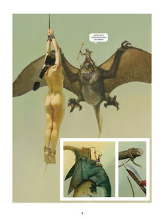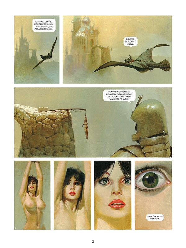 Takže co se vám to dostává do ruky? Ke to fantasy příběh, který je nádherně malovaný a hned po prvních stránkách vám dovede vyrazit dech. A to nejen proto, že je zde krásná a nahá žena. A že se Vicentemu asi velmi dobře kreslila. Nedá sejí moc vytknout a skutečně se na ní krásně dívá. Nahota u žen je podle všeho pro Vicenteho Segrellese celkem standardní a i v rámci tohoto dílu se s ní ještě setkáme. Ale nejsou to rozhodně jen nahé ženy, které vás dovedou uhranout, protože malba je celkově krásná. Malba samotná by samozřejmě fungovat nemohla, ještě jde o to, co je malováno. A tady Vicente Segrelles ukazuje svou žasnou fantazii. Setkáme se s draky a jim podobnými stvořeními, ale především to jsou úchvatná panoramata, z kterých vám odchází dech. Nádhera se dívat na to, jak může být krajina snová, a to i přesto, že se autor snaží dodržovat fyzikální zákony a biologické potřeby. Například osoba, která žila hodně v nížině má v horách a ještě výš pořádný problém a naopak.