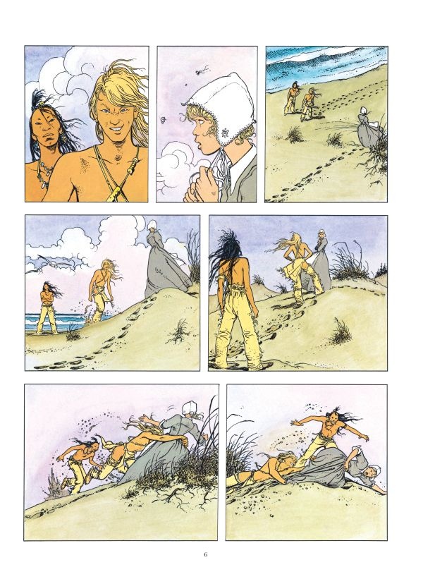 Jak název knihy „Indiánské léto / El Gaucho“ napovídá, jedná se o svazek, který v sobě má dva příběhy. „Indiánské léto“ poprvé vyšlo v roce 1983 a „El Gaucho“ pak v roce 1991. Nic dalšího již dvojice společně nevytvořila, snad i proto, že Hugo Pratt zemřel v roce 1995. Komiks „Indiánské léto“ by se dal žánrově zařadit do westernu, přičemž bych ještě specifikoval kategorii - zálesácký western. Východisko je celkem jednoduché - na začátku bílý muž zabije dva indiány, respektive dva muže náležející k indiánům. To indiány naštve., to je jasné. Jenže mladík zabíjel proto, že ti dva znásilňovali neznámou ženu. Ta patří k nedaleké pevnosti New Canaan. Mladík ji přivede ale ke své rodině, která vyhnaná a poznamenaná žije v lesích. Pratt i Manara zde skvěle zachycují dobu a místo, ale také krutost, kterou mám ve westernu velmi rád. Tady to má ještě nádech čarodějnických procesů, takže to dokáže pořádně zasáhnout. Trochu mi vadil kreslený dovětek v tomto komiksu, myslím, že by se čtenář obešel i bez něj.