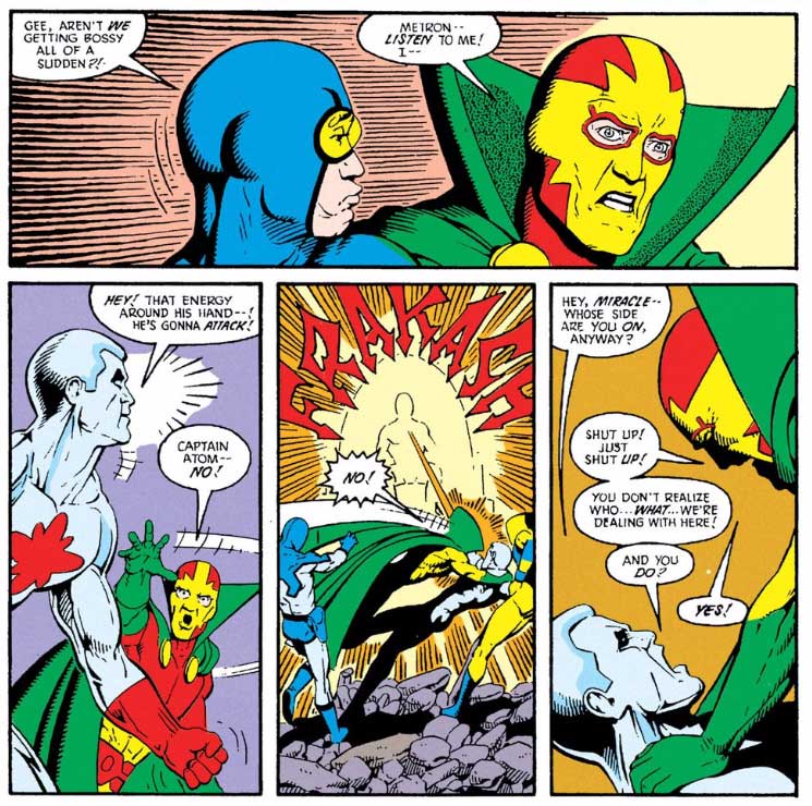 Kniha „DC komiksový komplet 68: Mezinárodní liga spravedlnosti, kniha druhá“ obsahuje celkem pět sešitů z původní série „Justice League International“ a k tomu ještě jeden retro sešit, konkrétně „Mister Miracle 1“, který stvořil slovutný Jack Kirby. Začnu rovnou tímto sešitem, který ukazuje, že Jack Kirby při jeho tvoření nebyl vyloženě na vrcholu své scenáristické formy, je příliš ukecaný, i když se mu kresebně musí nechat, ale i relativně komorní, tedy nikoli vesmírný komiks mu seděl a postavy kreslil výtečně. A když se místy podíváte na detaily, musíte uznat, že si s nimi skutečně vyhrál. Jen příběh samotný je takový relativně jednoduchý origin, který je celkem zajímavý tím, že se jedná o kouzelnickou únikovku. Jen je škoda, že to nakonec není až tak kouzelnické jako spíše technologické. Ale tak je to Jack Kirby, má to být sci-fi, s tím se prostě musí tak trochu počítat. Ani v roce 1971 nepřišel s vyloženě špatným kouskem.