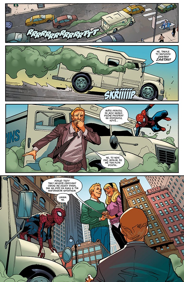 Kniha „Spider-Man: Velká moc, velká odpovědnost“ je nekonzistentní a dle mého názoru jednoduše neplní to, co by měla plnit. Tohle by měl být „Můj první komiks“, seznámení se se Spider-Manem v případě, že jste dítě a moc ho neznáte. Ale tohle kniha prostě není. Je to čtení pro děti, které budou znát Spider-Mana z televizního seriálu anebo třeba i z filmu. Navíc v titulu je „Velká moc, velká odpovědnost“. Tohle základní spider-manovské heslo je tu zmíněno jen na začátku, jeho smysl je pouze v rychlosti odfláknut shrnutím toho, jak to bylo se vznikem Spider-Mana a tím, že Peter Parker si nejprve svou odpovědnost neuvědomoval. Pak už se jen jede na to, aby Peter prožíval příběhy, které budou zábavné, což asi jsou, a divné, což také bohužel jsou. Spider-Man je superhdina ze sousedství, ale v jednom příběhu se podívá do Anglie... Ne, tohle prostě nefunguje, podobně jako mi přišlo divné, když se ve filmu podíval do evropských velkoměst. Podstatu Spider-Mana příběhy v knize „Spider-Man: Velká moc, velká odpovědnost“ prostě nezachycují a sem tam jsem z nich měl pocit, že Paul Tobin ani nezvládl zaměření na dětského čtenáře, že ty vtipy jsou místy spíše pro dospělejšího, který už má trochu načteno.