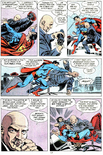 Zelený Supermana oslabuje natolik, že by ho mohl zabít, červený mu pak bere jeho schopnosti, a to natrvalo. I když... Tady to najednou celé začíná kulhat, a to pořádně. Kde se červený kryptonit vlastně vzal? Dostal ho do ruky Lex Luthor, který v té době nemá jednu ruku, tedy vlastně dlaň, i když si ji rychle vyměnil za robotickou náhradu, a mimochodem také umírá na rakovinu z ozáření, kterou - ironicky - dostal z toho, že sám sebe vystavil radioaktivnímu zelenému kryptonitu. Jenže on rudý kryptonit nevytvořil, ten se k němu dostal jako jeden z vtípků Mr. Mxyzptlka. A tady už příběh pořádně padá na hubu, protože zrovna Mr. Mxyzptlk je jednou z nejblbějších postav Supermanova univerza. Všechno, co dělá, je vlastně jen sranda. Jen se to musí vzít za správný konec a neporušit pravidla. Anebo je porušit. Záleží, co chcete dosáhnout a jaká jste strana. On přinesl Lexovi rudý kryptonit, ale v konečném zúčtování to vypadá, že on ovlivňuje, jak a jestli bude působit. A tak si člověk říká, proč vlastně byla taková berlička, jako je červený kryptonit, třeba. Ten příběh by se obešel i bez něj. Jako kdyby tvůrci chtěli rozšířit počet bizarností v Supermanově světě o další, a to v době, kdyby čtenář čekal, že budou spíše ubývat.
