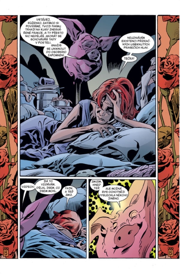 Bill Willingham se se svou sérií mazlí, a tak se rozhodl, že si pro blížící se té číslo musí něco připravit. A to sté číslo my najdeme právě v knize „Mýty 15: Růženka“, ale až na jejím konci, je to číslo, které knihu uzavírá. Nejprve se musíme zaměřit na to, jak se to má s Růženkou a co nakonec pomůže tomu, že konečně zvedne zadek, umyje se a postaví se čelem svým povinnostem, protože ona je hlavou Farmy. Tedy alespoň prozatím, protože už se začínají objevovat hlasy, které hovoří o tom, že by bylo možná fajn, kdyby se posledního azylu na Zemi oficiálně chopil někdo, kdo pořád nebulí v posteli. Ale mezitím sledujeme, jak se to s Růženkou mělo, co ji přivedlo do takových sraček a výčitek. A popravdě, přebájení některých klasických pohádek je celkem fajn, taková „Sněhurka a sedm trpaslíků“ tu sice není nějak moc explicitní, ale stejně vám dojde, že tohle je sakra realističtější než taková Disneyho verze. A jasně, taky je to pohádka, kterou byste dětem určitě nevyprávěli.
