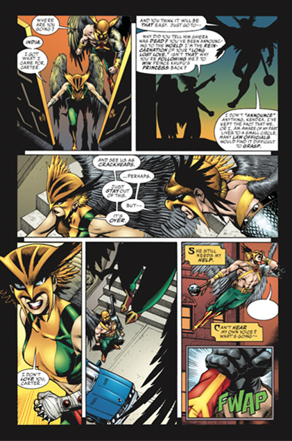 I když měl Johns koncept pro to, jak spojit všechny dřívější Hawkmany do jedné postavy, jako kdyby neměl koncept pro to, do jakých příběhů postavy vrhnout. Na jednu stranu jsou to městské postavy, které chtějí pomoct jednomu staříkovi a jeho synovi s muzeem, na druhou stranu se mění v Indiana Jonese, který pomáhá zmiňovaného syna zachránit v Indii. Pak je v tom i něco kosmického, co souvisí s ntým kovem, jenž dává Hawkmanovi a Hawkgirl jejich schopnosti. Do toho menší detektivka s jedním zabijákem, která by ještě mohla mít pokračování, protože je ukončena posledním sešitem, jenž je v knize „DC komiksový komplet 70: Hawkman - Nekonečný let“ obsažen. V těch příbězích je nesourodost. Jako kdyby spolu s tím, jak si hledá Hawkman cestu k Hawkgirl, hledal i Johns cestu k tomu, o čem vlastně psát. A tak prostě jen kupí příběhy, kde má nějakého bohatého záporáka, který ale sám o sobě nemá jiné schopnosti, do toho dává něco exotického, ale celkově to nemá žádný rámec.