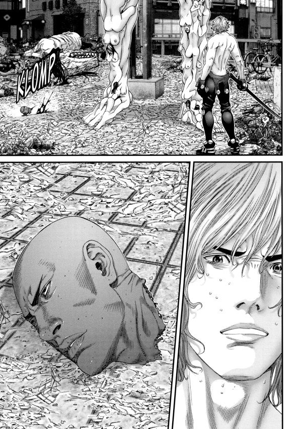 Druhá část knihy „Gantz 24“ už je pak jen souborem dalších soubojů, které jsou navíc v klasického autorově kadenci, kdy je všechno moc rychlé, ale přitom roztahané, těch akčních, soubojových panelů je moc, i když vás třeba někdy ani moc nezajímá, jak takový souboj dopadne. Je to zběsilé, je to skoro beze slov, ale prostě už to ničím nevyčnívá, už to není zajímavé. Až tak moc, že doufáte, že souboje skončí, protože by se postavy zase mohly octnout v místnosti s Gantzem, nebo v normálních životech, a to v naději, že se děj někam posune. To by se mohlo stát v následujícím díle, konec knihy „Gantz 24“ tomu skoro nasvědčuje. Ano, musíte se ale smířit s tím, že to bude až v knize následující, „Gantz 24“ je jen o soubojích, a to navíc o soubojích postav, které vás snad ani moc nezajímají. I když tady se objeví šampion, který je celkem cool. Ani ten ale finále knihy „Gantz 24“ vyloženě nezachraňuje.