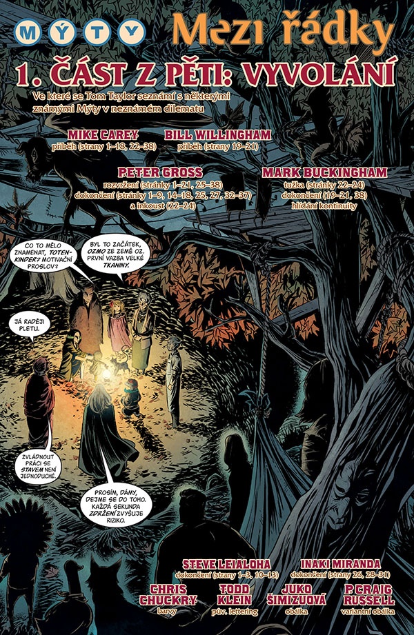 Kniha „Mezi řádky 9: Mýty mezi řádky“ jen potvrzuje to, v čem je Mike Carey dobrý a v čem se tolik podobá Neilovi Gaimanovi. Oba dva milují příběhy. Ty staré, co se vyprávěly a vypráví, ale i ty nové, které mohou vyprávět oni. Ta láska k příběhům je z knihy „Mezi řádky 9: Mýty mezi řádky“ neskutečně cítit, stejně jako je cítit i z dalších dílů série „Mezi řádky“. I když je tedy kniha „Mezi řádky 9: Mýty mezi řádky“ lehkým přešlápnutím na místě, které je doplněné o filosofický přesah, pořád je to příběh, který má co sdělit, který velmi dobře pracuje s postavami a vlastně i s napětím. Budete natěšení, jak to vlastně celé dopadne, tak proč si nedat jednu odbočku, která má zajímavé pojetí?
