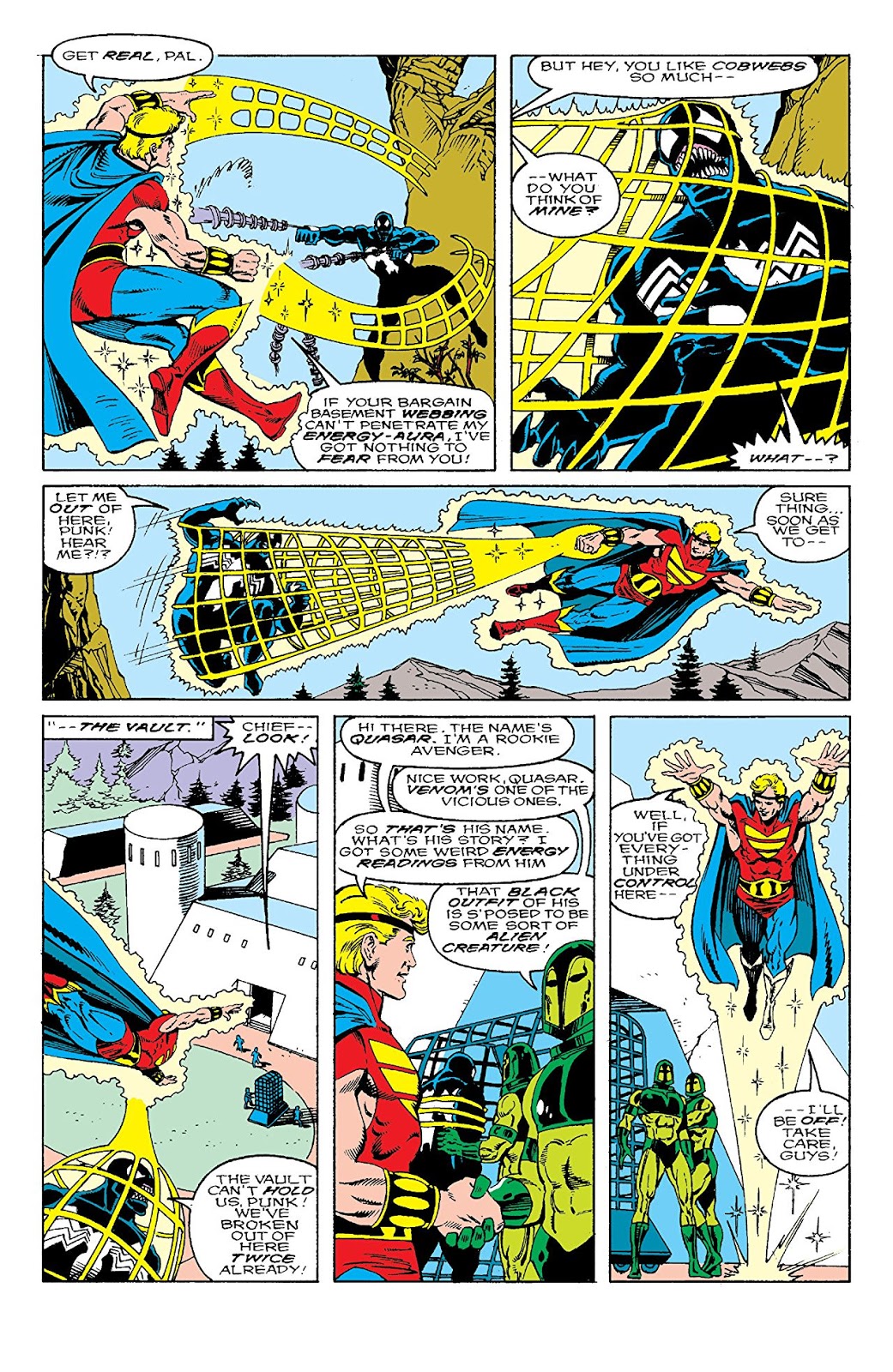 Wendell Vaughn, jak se Quasar oficiálně jmenuje, protože je to člověk, který získal schopnosti, je postavou, která v sobě má určitý potenciál, který byl ale zabit, minimálně v knize „Nejmocnější hrdinové Marvelu 81: Quasar“, celkem nudnými epizodami o tom, jak bojuje s méně či ještě méně známými záporáky, které si Mark Gruenwald mohl vytáhnout z Marvel Universe - a kteří zrovna byli na skladě. A kromě toho, aby Quasar nebyl jen postavou ve své sérii, která nemá návaznost na další série Marvelu, tak se objevuje v jeho příbězích celkem zástup postav, který upozorňuje na to, že hrdina naskočil do fungujícího univerza. Takže tu dojde na Human Torche, Spider-Mana, Captaina Americu, i když na toho jen velmi krátce, Venoma a Pozorovatele. Ten zástup je celkem zajímavý, ale jejich role je podružná. Hlavně proto - alespoň v mém případě - že bych stál spíše o vývoj postavy než jen o nějaké potyčky.