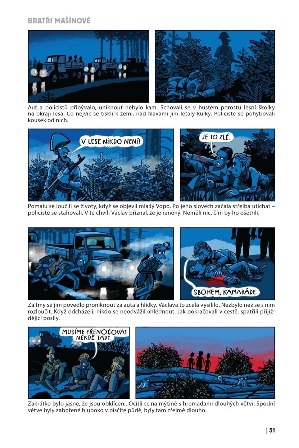 Při čte­ní kni­hy „Obrázky z moder­ních čes­ko­slo­ven­ských dějin (1945–1989)“ jsem si zase po něja­ké době říkal, že je fajn, že žije­me v době, jaké žije­me, i když i ona má svo­je nega­ti­va. Ta svo­bo­da, kte­rou ale máme, je neza­pla­ti­tel­ná. Stejně má ale člo­věk pocit, že někte­ří vlast­ně svo­bo­du nechtě­jí, radě­ji se necha­jí strh­nout idi­ot­ský­mi názo­ry, ať už jaké­ko­li stra­ny, a sle­pě jdou za nimi. Jako kdy­bychom si ješ­tě nezvyk­li na to, že může­me mys­let sami za sebe. Ne, komiks „Obrázky z moder­ních čes­ko­slo­ven­ských dějin (1945–1989)“ roz­hod­ně není o tom, aby na nás nějak agi­to­val, tohle je čis­tě můj pocit. A prá­vě sku­teč­nost, že to není agi­ta­ce, že to je zjed­no­du­še­ný ale pořád dob­rý pře­hled o naší nedáv­né his­to­rii, je pod­le mě kni­ha „Obrázky z moder­ních čes­ko­slo­ven­ských dějin (1945–1989)“ jed­nou z těch, kte­ré by děti moh­li pře­číst, aby neza­po­mně­li, v jaké zemi se naro­di­li a že i ona má tem­nou minu­lost.