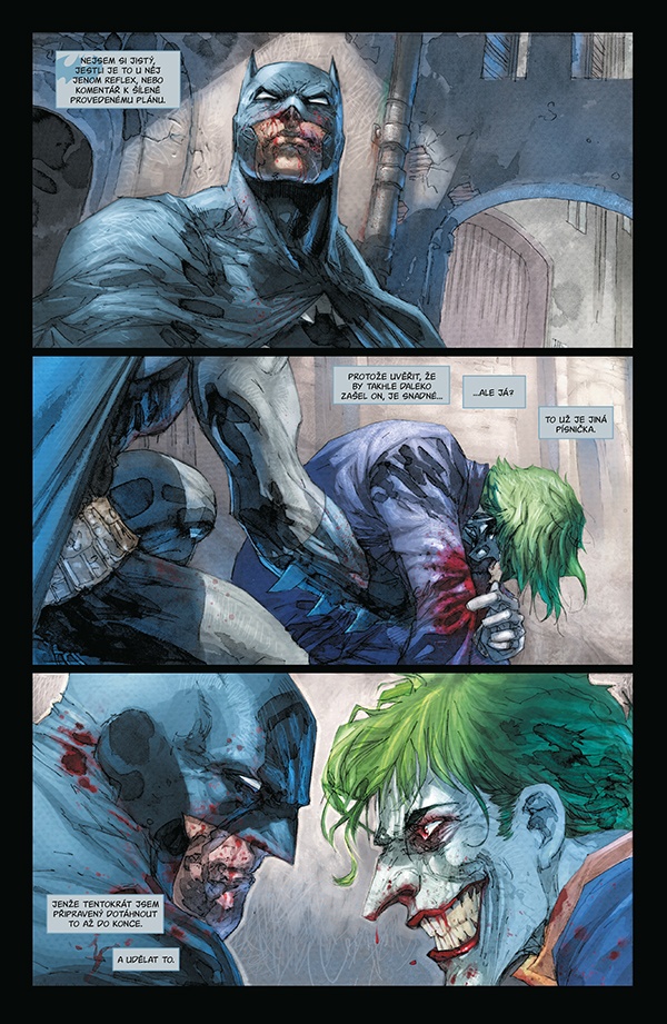 Do téhle chvíle je to docela zajímavé, proč se ale cestuje do jednotlivých měst... na to pořádnou odpověď nedostanete. Proto si myslím, že cílem opravdu bylo to, aby se města představila americkým čtenářům, kteří by si je pak mohli vyhledat na internetu. K jednotlivým městům jsou zde docela zajímavé narážky na jejich historii a kultury, a pokud mohu soudit, tvůrci si rešerše udělali skutečně pořádně. To se jim musí nechat. A to jak rešerše textové, tak i rešerše obrazové, kdy Berlín a Praha vypadají skutečně tak, jak je znáte. Zbylá dvě města tedy také, ale z hlediska kresby byl zvolen celkem speciální přístup. Každou kapitolu kreslil někdo jiný a kresba se postupně stává více a více halucinační, a to s tím, jak se prohlubuje i nákaza, která zamořila Batmanovo a Jokerovo tělo. V tomhle směru kresba skvěle souzní s příběhem a musí se vyzdvihnout.