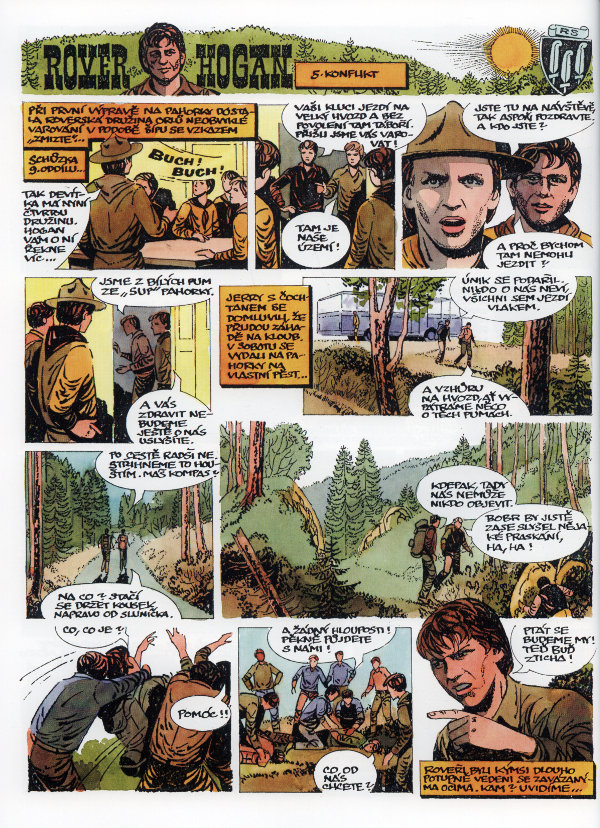 První část kni­hy tvo­ří komiksy „Rover Hogan“ a „Rover Hogan II“ - je zají­ma­vé že na obál­ce kni­hy je uvá­dě­no „Rower“ a na komik­sech „Rover“, ale pří­či­nu úpl­ně neznám. Tohle jsou ony skaut­ské komiksy, kdy posta­va­mi jsou skau­ti, a to v návaz­nos­ti na to, že komiks byl určen pro opě­tov­né zno­vuvy­dá­vá­ní časo­pi­su „Junák“, k němuž došlo v roce 1992. A k ukon­če­ní vydá­vá­ní také došlo v roce 1992, na kon­ci toho­to roku. Bylo to tedy poměr­ně krát­ké obdo­bí, ale poda­ři­lo se vydat jede­nác­ti­díl­ný seri­ál „Rover Hogan“ a nako­nec i tři­nác­ti­díl­ný seri­ál „Rover Hogan II“, kte­rý byl sice původ­ně uva­žo­ván jako dlou­ho­tr­va­jí­cí, ale konec „Junáka“ mu v tom tro­chu zabrá­nil. Na posled­ní strán­ce seri­á­lu je to doce­la patr­né, pro­to­že je vidět, že už je tam více tex­tu než kres­by, aby moh­li tvůr­ci komik nějak smys­lu­pl­ně zakon­čit.
