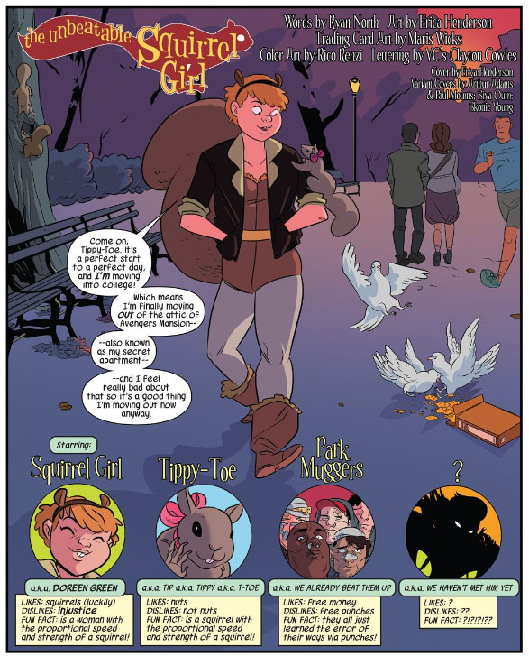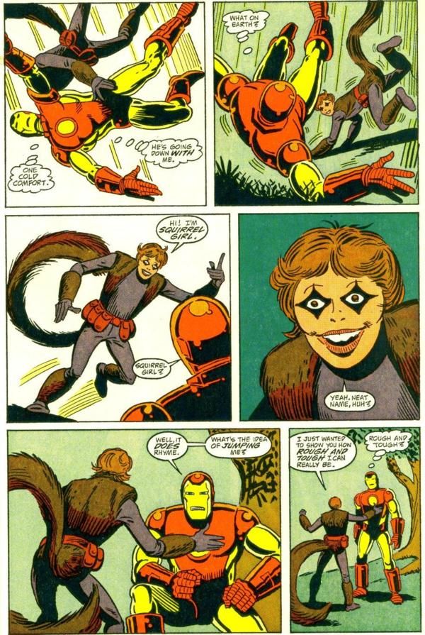 Když jsem zjistil, že součástí další knihy ze série „Nejmocnější hrdinové Marvelu“ bude Squirrel Girl, musel jsem se pousmát. Tohle je totiž postava, která byla primárně vymyšlena jako vtípek, a tak je i chápána. Scenárista Will Murray a legendární Steve Ditko tuhle postavu vytvořili jako jednorázovku v sešitu „Marvel Super Heroes 8“. Byl to vlastně jen celkem krátký komiks o tom, jak Iron Man v lese potká Squirrel Girl a jen díky ní porazí Victora Von Dooma, který se tu náhodou také nacházel a vlastně s Iron Manem ani nic neměl. Squirrel Girl jen hledala parťáka a připletla se, kam neměla. Ale je to ona, kdo zachraňuje situaci. Ale o tom se nakonec můžete přesvědčit sami, protože kniha „Nejmocnější hrdinové Marvelu 84: Squirrel Girl“ původní komiks z „Marvel Super Heroes 8“ obsahuje. To se psal rok 1991, když tenhle komiks vyšel. A pak se na Squirrel Girl na nějakou dobu zapomnělo. Ale dobré postavy se vracejí.