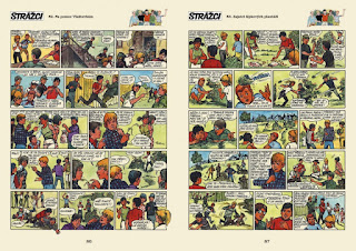 Kniha „Strážci“ je určitě skvělou vzpomínkou pro ty, kdo komiksy četli ještě přímo v ábíčku, ale myslím si, že to je zajímavé čtení i pro mladé. Možná v tom najdou něco zajímavého, co jim třeba uniká, anebo se jim alespoň odhalí to, jak děti před čtyřiceti lety a déle trávily svůj volný čas. A je to srovnání zajímavé. Jasně, možná si z toho nic nevezmou, možná to někoho zaujme. I to by stačilo. Na sbírce „Strážci“ je pak krásně vidět, jak ani nevadila výměna kreslíře, i když Libuše Kovaříková a František Kobík přece jen měli každý výrazně odlišný styl. Kovaříkové tenká linka byla jaksi uhlazenější, Kobíkova silnější zase mnohdy výrazně dynamičtější. A musí se uznat, že kreslíř byl skvělý v technických věcech, což v „ABC“ potvrzoval roky. „Strážci“ jsou skvělým návratem do jiné doby, ale je jasné, že už to dnes nesedne každému. Ale klubácký komiks má na naší komiksové scéně nesmazatelné místo a „Strážci“ jsou jeho velmi dobrým příkladem.