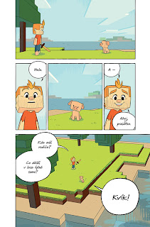 První povídkou je „Kazisvět“, což je taková moralitka o tom, že není hezké, když ničíte to, co postaví někdo jiný, protože by se vám to mohlo vymstít. Není to nic komplikovaného, prostě příběh o svědomí, který má v určitých fázích dokonce i hororový nádech, ale není potřeba se bát, že by se zacházelo někam daleko. Ani děti se moc bát nebudou. Tady je mimochodem minecraftovská grafika použita jen na pár záběrech na monitor. Druhou povídkou je „Oslavenec“, což je o tom, že má jeden hráč narozeniny a skoro to vypadá, že na něj kamarádi zapomněli... Asi je celkem jasné, jak to dopadne. Pojetí ilustrace v tom příběhu je zase velmi specifické, což ale platí i pro komiks následující, který se jmenuje „Syčákův příběh“. Jako kdyby zjednodušit už tak jednoduchého bylo cílem obou kreslířek. Není to špatně, ten styl tomu docela sedne. Mimochodem je zajímavé, že „Syčákův příběh“ je oproti předchozímu méně rozjuchaný. Především ve svém vyznění je výrazně smutnější.