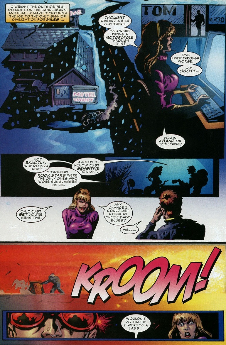 Jako slepenec působí i příběh „První roky Scotta Summerse“, i když tam je patrné, že se jedná o záměr, protože bylo důležité, aby se prezentovali nějaké základní události Scottova života předtím, než se stal členem Xavierovy školy. Takže se v rychlosti dozvíme, jak to bylo s jeho rodiči, alespoň domněle, vidíme, jak u něj poprvé propukla naplno jeho schopnost a jsme především svědky toho, jak se rozhoduje, jestli skutečně bude velitelem týmu, který někoho, kdo bude rozhodovat, potřebuje. Pokud Cyclopse moc neznáte, je to fajn shrnutí, ale nic navíc to nepřinese, nemluvě o tom, že zrovna zásadní událost s rodiči měla ještě trochu jinou historii, což se dovídáme v textovém bonusu na závěr knihy. V komiksu prostě nic není tak, jak by mělo být, alespoň pokud to přímo nevidíte, jak se to děje. A co si budeme povídat, ani pak není nikde psáno, že všechno není jinak...