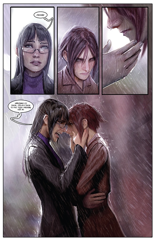 Ale dobře, asi se nebudeme hádat o tom, že vás postavy Ally a Lisy zaujaly, jinak byste se nezajímaly o třetí knihu, která v téhle sérii vyšla. Jsou skutečně skvěle napsané. Jak zazní v samotném komiksu, máte pocit, že to jsou reálné osoby, nejen nějaké papírem šustící charaktery, které se nepodobají lidem, jež skutečně žijí. Obě ženy - a nejen ony - by skutečně mohly mít předobraz v reálných postavách. Natolik jsou uvěřitelné. A tak jsem jim odpustil i to, že - hlavně tedy Lisa - jsou neskutečně ukecané a někdy je toho co se nám snaží sdělit, opravdu moc. Možná až příliš. Ale zase to vede Stjepana Šejiće k tomu, že se může trochu vyřádit, a to myslím ve smyslu kompozic jednotlivých panelů, kdy některé jsou skutečně krásné, ať už tou romantickou rovinou, kdy panely s okvětními lístky jsou prostě parádní, anebo jen tím, jak najednou změní strukturu panelů. Jsou tu velké, pak najednou malé, pak je struktura úplně nekonzistentní, ale je to jen v souladu s tím, co je v danou chvíli vyprávěno.