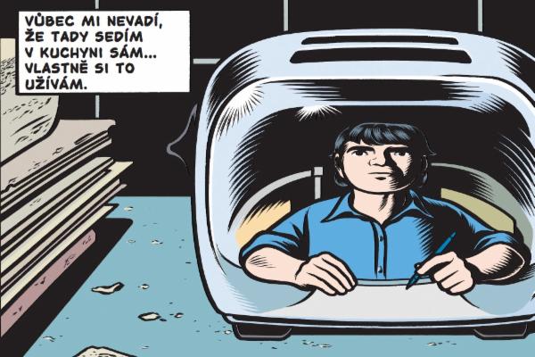 Jasně, ono se to nejspíš rozjede, ale tím, jak je to rozdělené na alba, tak to najednou hodně ztrácí. Charles Burns potřebuje víc prostoru, protože chce něco vyprávět, ale když sám sebe takhle usekne, najednou je z toho celkem tuctový sešit, který dává na odiv jeho zálibu v béčkových filmech. Jelikož tu sám sdílím, tak je to pro mě zajímavé, ale jsem si jistý, že tohle nemusí nadchnout každého. Navíc zrovna mi nepřijde nijak skvělé, že tu zjednodušeně přepisuje děj jednoho ze základních sci-fi kamenů, kterým je film „Invaze lupičů těl“ z roku 1956. Ti, co mají béčka rádi, tenhle film znát budou, ti, co béčka rádi nemají... no, těm to asi stejně moc neřekne. Jako tak nějak to hezky funguje pro děj, to ano, ale zaplácat tím víc jak dvě stránky... Nějak mi to prostě nesedělo. Navíc to převyprávění je takové otrocké, nudné. Pak je to chvíli zajímavé a pak je konec. Nevím, nemohu si pomoct, ale v tom formátu, kdy má komiks jenom 64 stran, Burnsův vypravěčský styl prostě nefunguje.