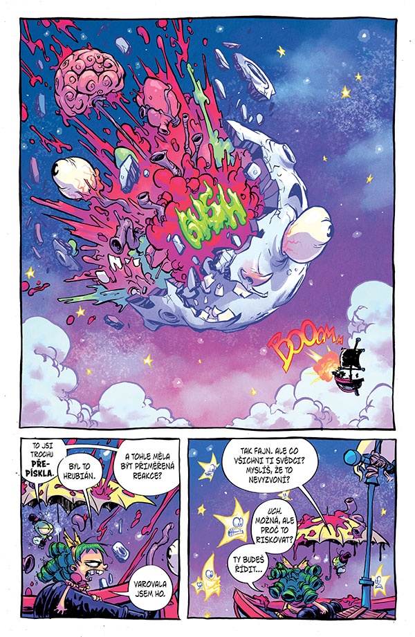 Komiks „Nesnáším Pohádkov 1: A jestli neumřela, vyšiluje dodnes“ je takovým zajímavý úkazem. Buď vás nadchne, anebo si prostě jen řeknete, že je to akorát další pohádkový příběh postavený na hlavu. A on je, ale je to na hlavu postaveno tak skvěle, že jsem se prostě od začátku do konce bavil. Tohle je „Alenka v říši divů“, která není jen bláznivá, ale je masakrální, je doslova šílená, je plná gore a sprostých slov, i když pravda, ta jsou skrytá za slovíčka, která jsou vlastně pohádkově jemná. Je to kouzelné, je to brutální. Ten recept na komiks „Nesnáším Pohádkov 1: A jestli neumřela, vyšiluje dodnes“ je vlastně docela jednoduchý. Udělat z pohádky pořádně hnusný masakr, kde hlavní hrdinka je všechno, je ne nevinná holka. A za mě to stačí, protože se toho chopil autor, kterému téma prostě sedlo. A hlavně, Skottieho kresba je pro tenhle příběh naprosto dokonalá.