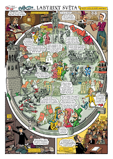 I když bych měl výhrady ke struktuře knihy, kdy se dvě její části nějak zásadně nedoplňují, tak rozhodně nemohu mít výhrady k tomu, jak je příběh napsán a jak je komiks vytvořen. Komiks si nebere nějakou jasně stanovenou kostru, každá stránka je trochu jiná, každá se zaměřuje na jinou fázi, jiný aspekt Komenského života a je tomu uzpůsobena i jeho struktura. Sem tam je použita rovnou dvoustránková mapa, sem tam jsou komiksové sloupce časovou osou, ale i srovnáním. A do toho je příběh, který je napínavý, místy skoro až do hororové pohádky, ale v klidu, vždy je tu dobrý konec. A na závěr je happy end, který sedne. „S Komenským do komiksu“ je prostě pěkná ukázka toho, jak spojit didaktický komiks, kdy se něco dovíte o velmi významné osobnosti, s tím, jak prezentovat dětem příběh o přátelství a o tom, že i když každý máme svoje chyby, stejně tak máme každý svoje silné stránky. Pokud se na ně zaměříme a nebudeme se navzájem, ale i vnitřně odsuzovat za ty špatné, společně můžete hodně osáhnout.