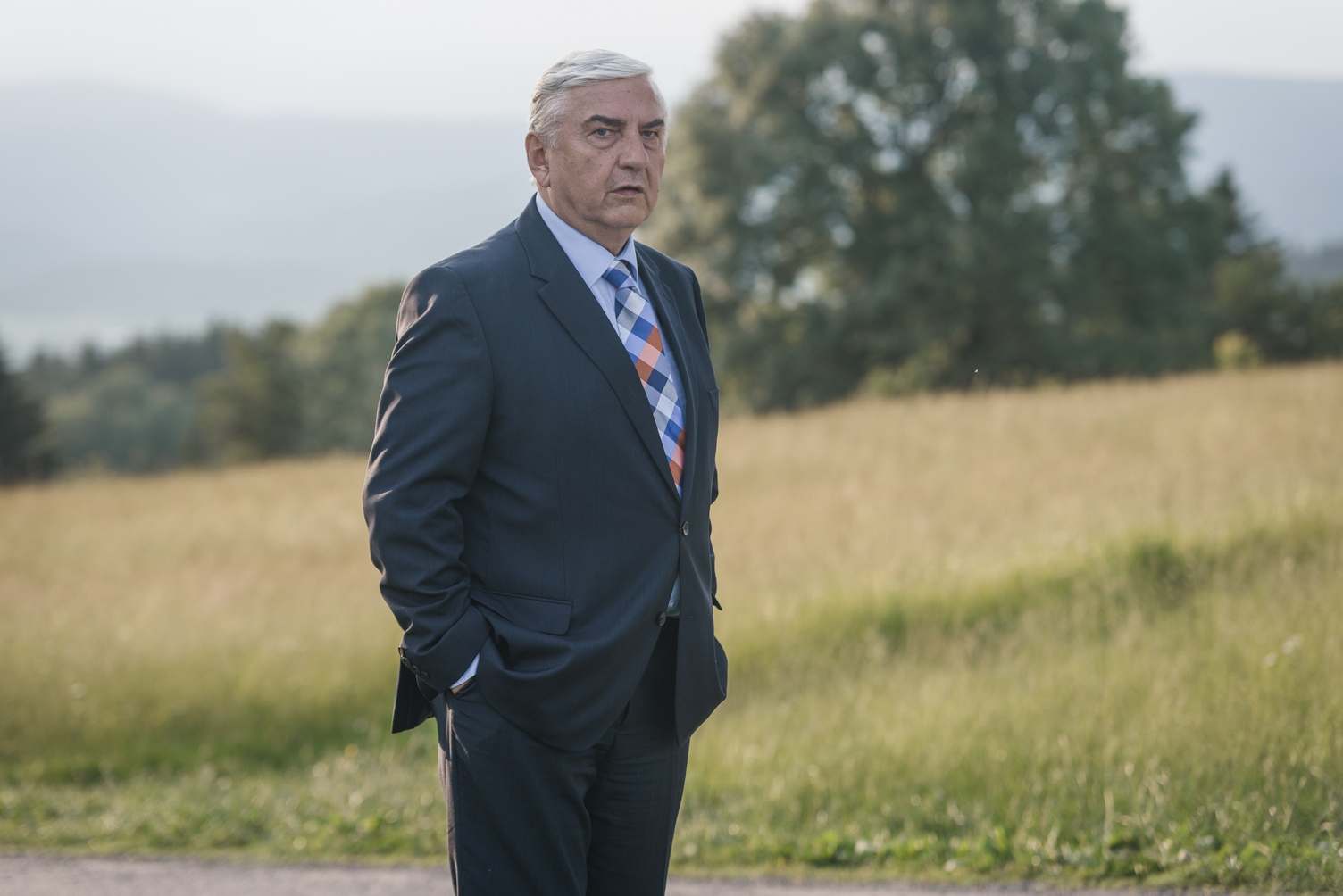 Jediný policista v obci, strážmistr Topinka (Robert Mikluš), je nešikovný a omezený výstavní blb, jemuž nelze policejní schopnosti uvěřit ani skrz přivřené oko. Do jeho vyšetřování se motá ale i mladá a vypočítavá policejní kadetka píšící diplomku o československých vraždách (Elizaveta Maximová), stereotypně sexuálně objektivizovaná a stylizující samu sebe do laškovně svádivé kočičky, co ale umí vystrčit drápky, a machistický vyšetřovatel ze Slovenska (Marek Geišberg), mezi nímž a strážmistrem Topinkou panuje značné nepřátelství, aniž by bylo zmíněno, kvůli čemu.