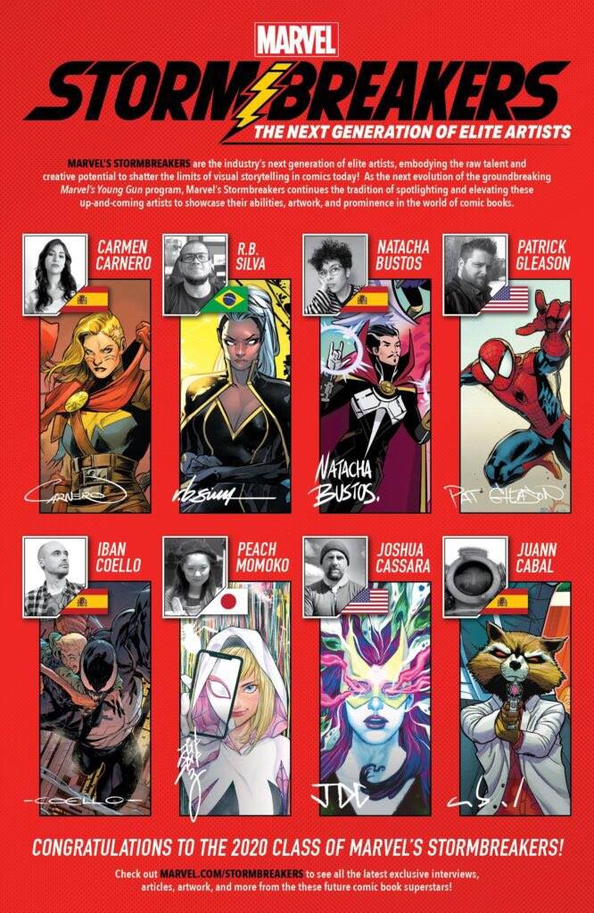 Jak možná mnozí z vás víte, Marvel se nikdy nebál podporovat mladé kreslíře a talenty, jež si zaslouží pozornost komiksových fanoušků. Pravým důkazem toho může být výjimečný, oficiálně organizovaný program jménem Marvel Young Guns, jehož cílem bylo upozornit na výtvarníky, které by člověk neměl v komiksovém průmyslu jen tak přehlédnout, a jejichž nadání rozhodně stojí za povšimnutí. Vydavatelství se ovšem rozhodlo jít o krok dál, a tak nahradilo Young Guns odvážnější a modernější iniciativou Marvel’s Stormbreakers.
