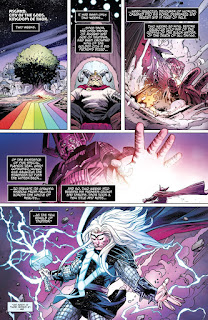 One-shot jako takový je velmi kratičký. Má dokonce o poznání méně stránek než standardní americký sešit, takže bohužel není dostatek prostoru na vybudování kdovíjak sofistikovaného a promyšleného příběhu. Naneštěstí se to dost projevuje na celkové kvalitě. Ačkoliv se scénáře chopil všemi zbožňovaný Donny Cates, který patří mezi moje nejoblíbenější současné scénáristy Marvelu, nepodařilo se mu úspěšně vykonstruovat zápletku, jež by měla šanci zaujmout. Uznávám, černé vyprávěcí rámečky s vcelku poutavým popisem fungují na jedničku, to bez debat. Pakliže se podíváme na dialogy jednotlivých postav, ty jsou mnohem horší. Nevím, zda to byl záměr tvůrců, protože se asi snažili oprostit od klasického a naprosto obyčejného stylu psaní, anebo jde jen o tvůrčí selhání, ale při čtení jsem se musel smát několika bizarním, někdy až nelogickým situacím, u nichž si občas říkáte, jak něco takového mohl napsat jeden z nejlepších superhrdinských scénáristů moderní éry.