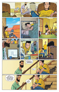 Scénáristicky je sešit na opravdu vysoké úrovni. Musím především ocenit inovativní přístup, kdy scénárista nejen bravurně pracuje se všemi členy Fantastic Four, ale zároveň se snaží vsadit na neokoukané postupy. Jak jsem navíc psal o pár řádků výše, děj je koncipovaný úplně jinak, než jak jsme u klasických řad Fantastické čtyřky zvyklí, a místo akčního spektáklu tak dostanete komornější, mnohem přízemnější příběh, jenž je postavený zejména na funkčních interakcích mezi hlavními aktéry. Ale aby toho nebylo málo, Cantwell vsází i na další prvek: tím je strach z neznáma. Může to na první pohled znít prapodivně, ale nebojte, hned vysvětlím, co tím chci říct. Hrdinům se totiž v druhé polovině vyprávění začnou dít strašlivé věci. Jejich těla se z nevysvětlitelných důvodů začnou „chovat“ úplně jinak, než jak by měla, a všechno nasvědčuje tomu, že něco není v pořádku, což si ostatně brzy začnou uvědomovat. Vše se otočí o sto osmdesát stupňů a najednou se famílie ocitá v obtížné situaci, ze které nejde jen tak lehce vyváznout. To je rozhodně prvek, jenž se u Fantastic Four vidí - minimálně v dnešních moderních komiksech - dost vzácně. Rodinku totiž většinou vidíme v mnohem odlehčenějších a klidnějších situacích, než jaká je právě tato. A za tohle si scénárista zaslouží můj velký obdiv, protože přijít s něčím takovým je něco nevídaného. Navíc, další výhodou je, že „Road Trip“ občas lehce zabředne do vod jednoho specifického subžánru hororu. Díky tomu jsou některé dějové pasáže dost znepokojivé.