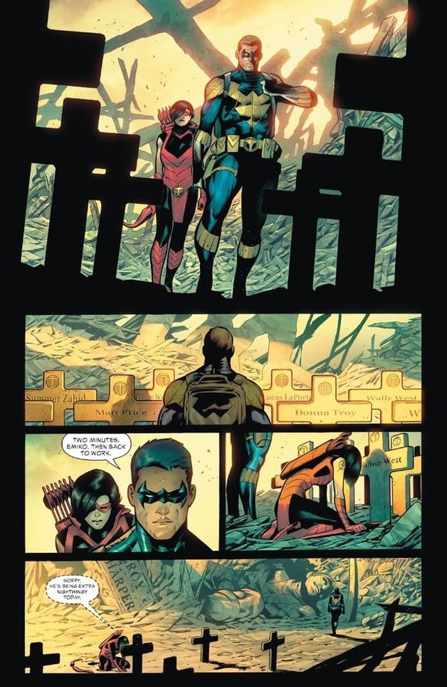 Teen Titans patří mezi jedny z nejznámějších týmů DCčkovského vesmíru. Osobně je mám docela v oblibě, protože týmovky, jež jsou založené především na souhře mladých a jedinečných, leč velmi nezkušených postav, které se teprve hledají, jsou něco pro mě. Absolutně nezáleží, zda vycházejí pod záštitou Marvelu či DC, protože z tohoto hlediska jde hlavně o značku firmy. Primárně důležitý je scénář, bez něj totiž nemají tvůrci šanci oslovit čtenáře a nemohou naplno pracovat s charaktery hlavních protagonistů. V případě Mladých Titánů to platí dvojnásobně. Proč? To je jednoduché. Tým totiž byl odjakživa založen na vzájemných interakcích a rovněž na postupně se prohlubujících vztazích. To zpočátku sloužilo pouze pro účely třeskutých, relativně naivních zápletek, postupem času i pro lepší vyznění komplexnějších příběhových linií - dnes již legendární “Judas Contract” (vyšel česky v rámci DC Komiksového Kompletu) toho budiž perfektním příkladem. Hlavní otázka recenze ovšem zní: Podařilo se Timu Sheridanovi naplno využít jejich potenciál v “Future State: Teen Titans”, anebo naopak ne?