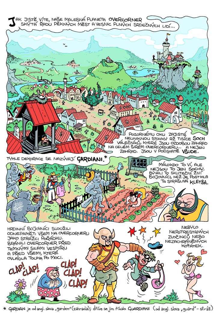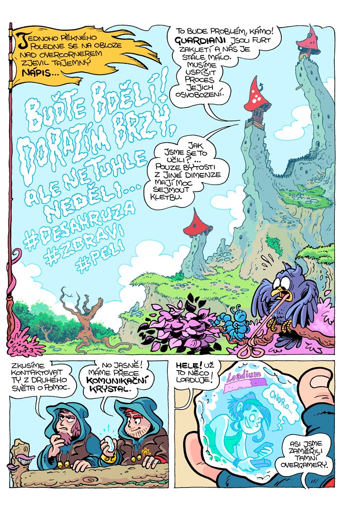 Abych pravdu řekl, o hře jsem již párkrát v minulosti slyšel. Ačkoliv nepatřím mezi skalní fanoušky, kteří by pravidelně sbírali balíčky karet a vyznali se v mytologii promyšleného fiktivního světa, oceňuji nápad přijít s neotřelou ideou, jež může na současném trhu zaujmout kdekoho, nehledě na věk. Ostatně, sami musíte uznat, že myšlenka propojit sbírání kartiček se současným trendem mobilních her je sama o sobě výborná a tvůrcům za to musím dát můj obdiv. A co víc, pěkná, vskutku roztomilá stylizace, umocněna propracovanými designy jednotlivých hrdinů, povyšuje Scratch Wars o několik úrovní výše. Není tedy divu, že s narůstající popularitou se autoři projektu rozhodli rozmanitý svět obohatit o jedinečné příběhy. První z nich, “Scratch Wars: Legenda Overcorneru”, vyšel v roce 2019 a na starost si jej vzalo duo českých ostřílených tvůrců - scénárista Michal Opitz, který naposledy exceloval svou brilantně napsanou minisérií “Rumcajs se vrací”, a kreslíř Dan Černý, který ná na kontě kromě Tryskošneka ze Čtyřlístku také kvalitní autorské počiny “Jelita” a “Fanouš” (na Comics Blogu najdete recenzi na všechny díly - „Továrna zkázy“, „Tři úkoly pro Klytoru“ a „Po záhadných stopách tajuplna“). Otázka ovšem zní: podařilo se jim stvořit neortodoxní a dostatečně zajímavý komiks?