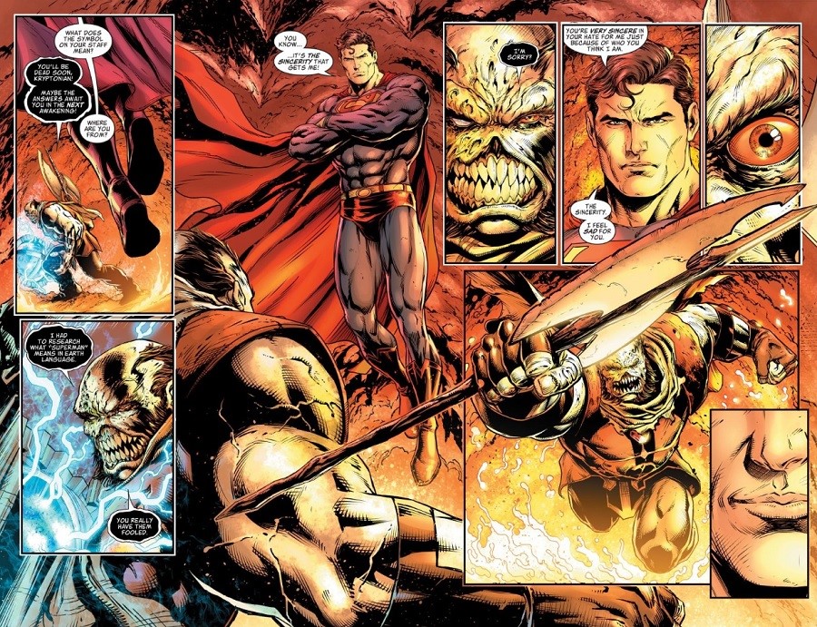 Tou nejhorší složkou celého komiksu je záporák. Nejenom že působí strašně genericky, svým vzhledem a způsobem chování doslova a do písmene připomíná mnohem známějšího Doomsdaye, ale také má velice neoriginální motivaci. Díky tomu, jak nezajímavě byl napsán, si dokonce ani nemohu vybavit jeho jméno, což také něco značí. Zmatečné skoky v ději tomu také výrazněji nenapomáhaly. V tomto ohledu bohužel nemohu moc chválit, takže budu jenom v hloubi duše doufat, že se scénárista polepší a záporáka lépe vykreslí.