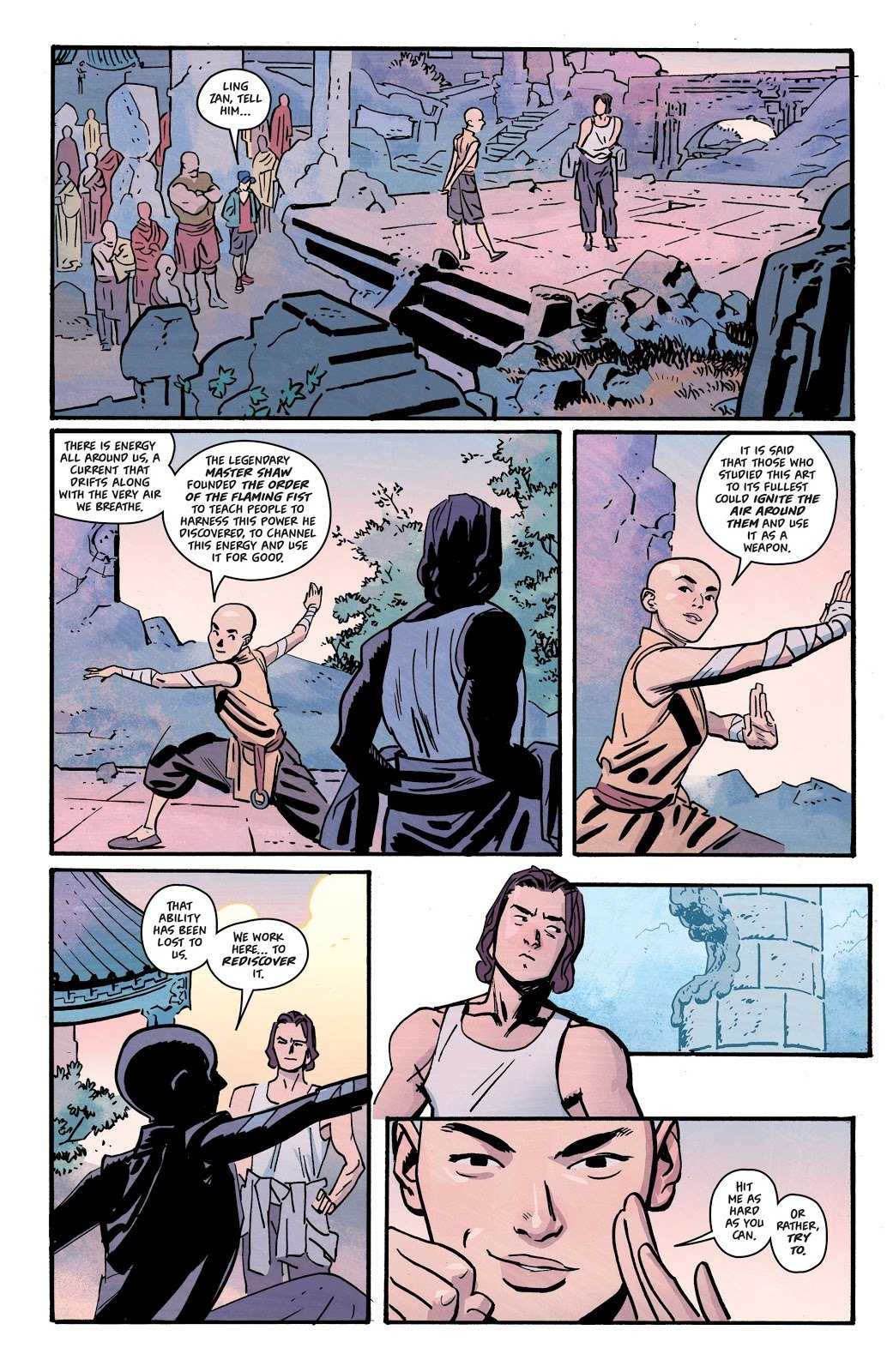 Komiks “Fire Power Vol. 1: Prelude OGN” pojednává o mladíkovi jménem Owen Johnson, který se vydá na výpravu do Číny, kde objeví tajemný Chrám Shaolin. Zde se setká se svým budoucím mistrem, který jej následně provede základy bojového umění a naučí jej různé zajímavé techniky boje. Owen se tak stane plnohodnotným studentem, jenž se bude muset nejenom přizpůsobit tamějšímu životu, ale taktéž bude nucen se naučit neobyčejnou schopnost “Fire Power”, což je dovednost, díky které dokážete vytvořit a vzápětí na nepřítele vystřelit ohnivou kouli.