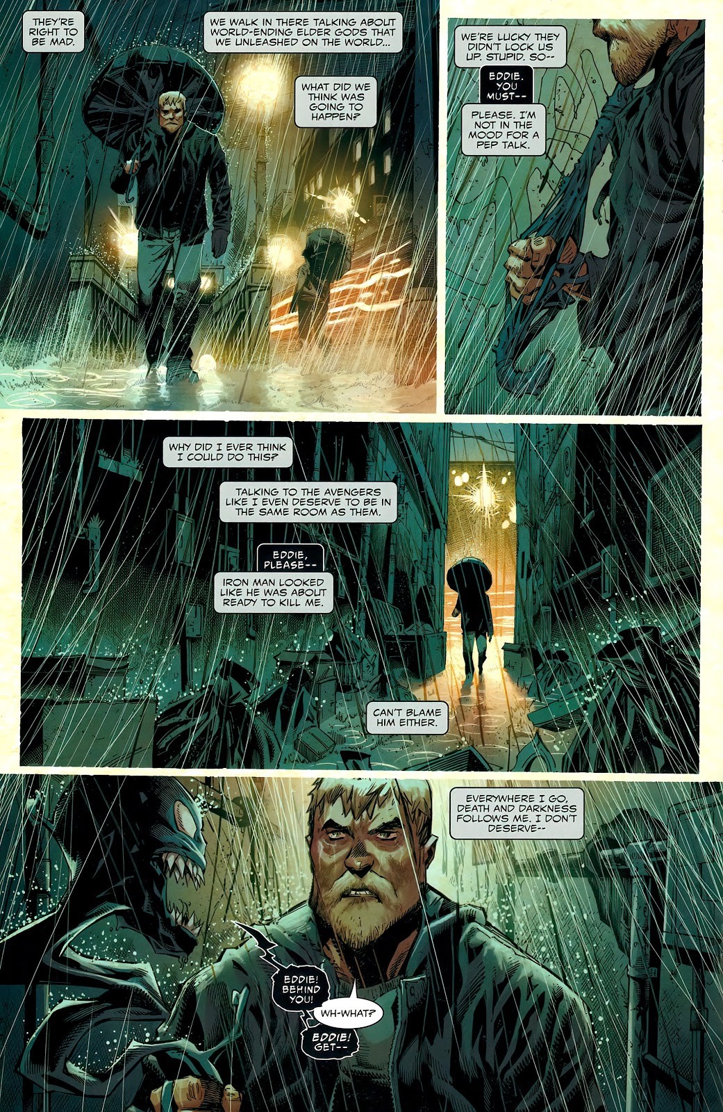 Právě v druhé části sešitu z FCBD se stavějí základy pro budoucí dění. Venom upozorňuje další hrdiny na to, že se hrozba obrovských rozměrů blíží k Zemi, což nevěstí nic dobrého. Zároveň, aby toho nebylo už tak málo, na scénu přichází zcela nový záporák jménem Virus, který se s Eddiem Brockem utká v pouličním souboji. A vím, teď, jak to tady popisuji, to možná zní strašně překombinovaně na poměry zápletky kratšího příběhu, ale všechno do sebe krásně zapadá a celá nástavba pro další dění funguje na jedničku. Cates napsal funkční svižný scénář, kde opět dokazuje, že marvelovským postavám a Venomovi dokonale rozumí, a Stegman se postaral o úžasné temné panely, plné krásných detailních scén, obzvlášť těch v dešti.