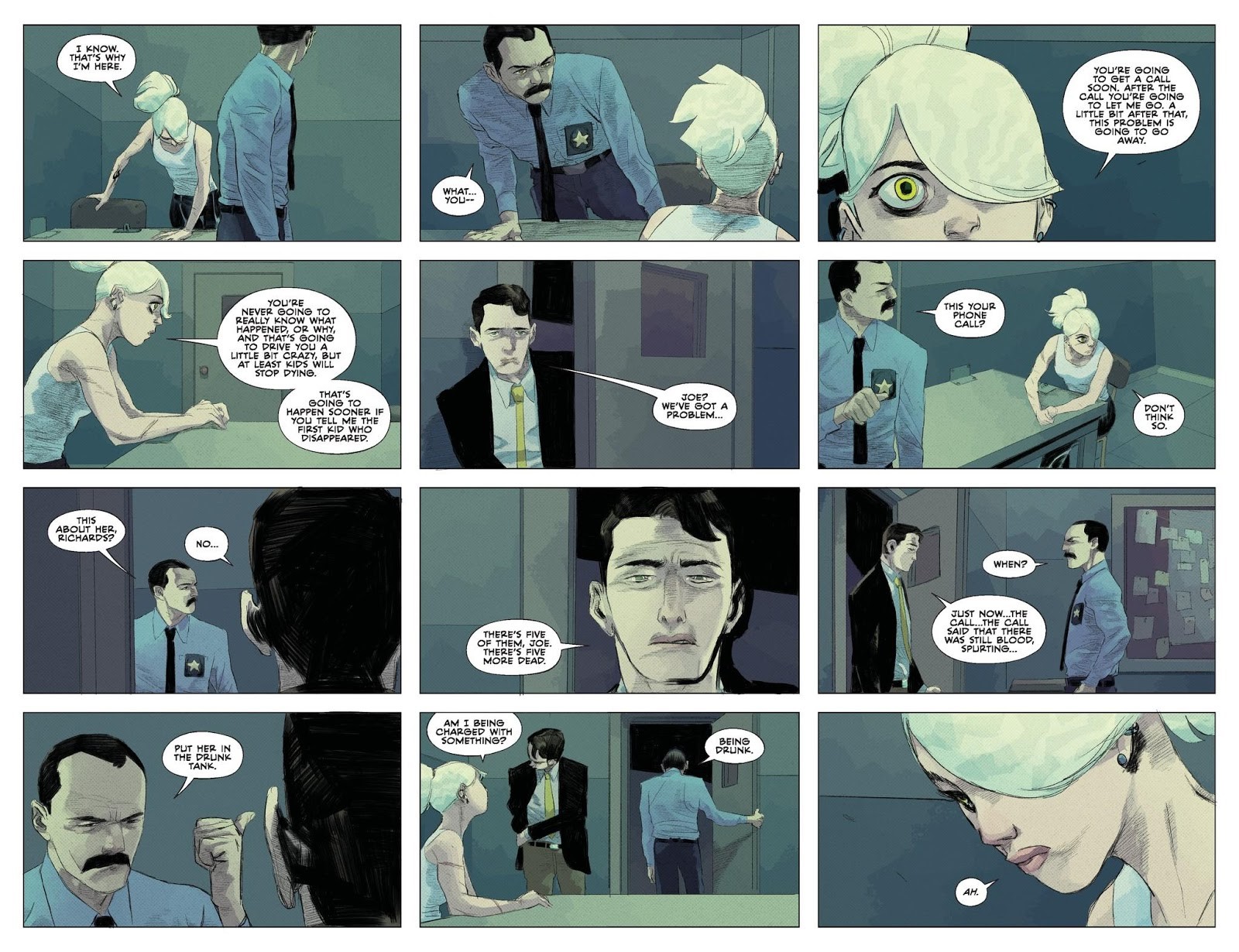 Některé detaily jsem samozřejmě vynechal, abych nic zásadního nevyzradil, nicméně vše podstatné již víte. A já hned na úvod musím říct, že zápletka není špatná. Už od prvních stránek začíná scénárista rozplétat síť záhad a čtenáře uvádí do situace, kdy neví, co má v dalších částech očekávat. První moment, kdy ne všichni zůstanou naživu, vás opravdu překvapí, a dokonce bych si dovolil tuto pasáž označit za jednu z nejděsivějších v první knize. Od tohoto momentu pak pokračujeme dál. Začínají se nám pěkně představovat postavy, prohlubovat jejich osobnosti a začínáme zjišťovat více a více detailů. V tomto ohledu všechno funguje krásně, jelikož čtenář chce vědět, kam to všechno nakonec dospěje, a je silně motivovaný číst dál.