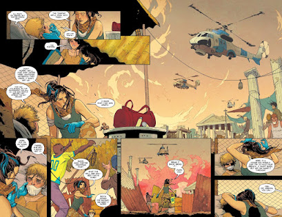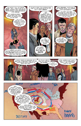 Nejprve bych chtěl rámcově představit děj. Ten je zasazený do země, která kdysi bývala krásnou moderní Amerikou, jak ji všichni známe dnes, jenomže teď je úplně jiná. Nacházíme se v daleké postapokalyptické budoucnosti a v hlavní roli máme skupinu elitních vycvičených žoldáků, která hledá lék na globální pandemii. Právě kvůli tomuto cíli se rozhodnou vyrazit na speciální misi, která je zavede až do neprobádaných koutů Spojených států, kde je čeká nejedno velké překvapení. Tím jsem si udělal krásný oslí můstek, neboť jako první musím šíleně pochválit prostředí. Celá Amerika je v komiksu znázorněna naprosto bravurně! Dost se mi zamlouvá celá myšlenka díla a její samotné provedení, přičemž všechny krajiny, různá zákoutí a scenérie, to všechno je opravdu nápadité a rozmanité. V tomto směru vážně nemám žádné výhrady. Autoři si zkrátka dali hodně záležet a snažili se, aby čtenáře co nejlépe nalákali na poznávání nového neprobádaného světa.